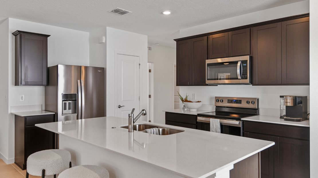 The Daylen’s single-story design gives your family the room you need with a luxurious Owner’s Suite and 3 additional bedrooms. The oversized island in the designer kitchen and open-concept gathering room and café area make entertaining friends and family a breeze. Plus, enjoy the conveniences of a full laundry room and 2 car garage.