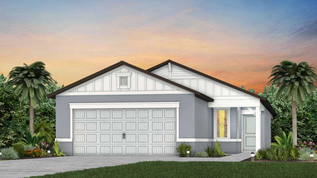 Daylen Model at Pioneer Ranch in Ocala, Florida built by Pulte. Floorplan with 4 beds, 2 baths, 1580 sqft priced from $272990