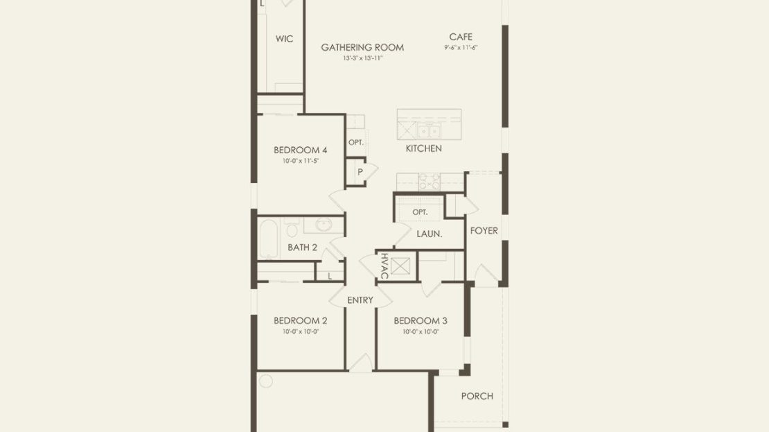 The Daylen’s single-story design gives your family the room you need with a luxurious Owner’s Suite and 3 additional bedrooms. The oversized island in the designer kitchen and open-concept gathering room and cafe area make entertaining friends and family a breeze. Plus, enjoy the conveniences of a full laundry room and 2 car garage.
