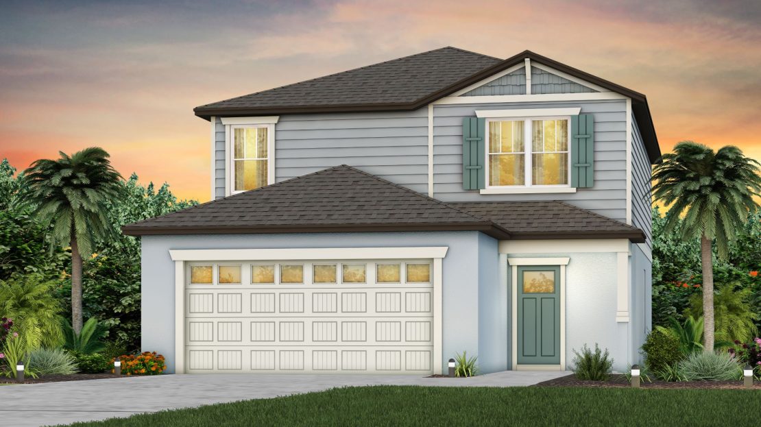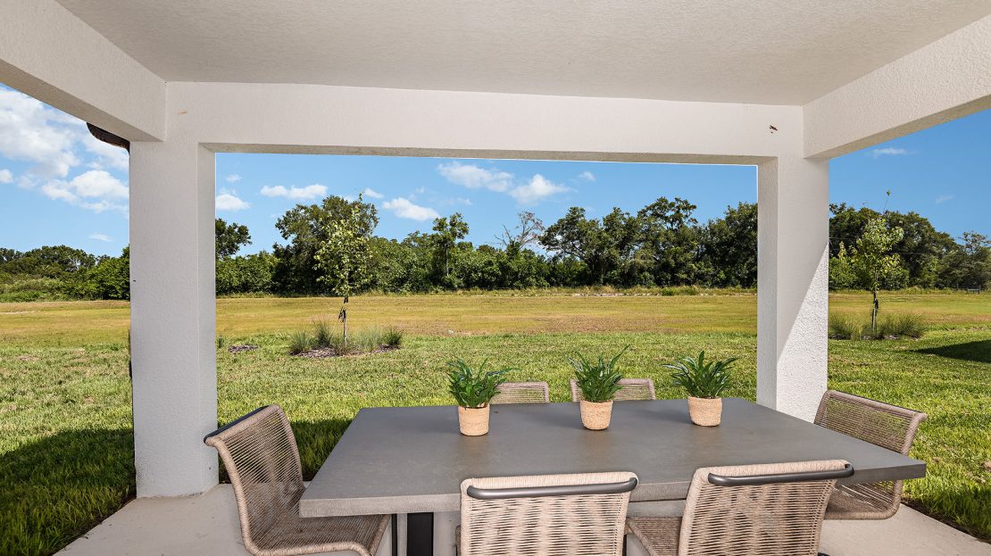 Mill Run Model at Pioneer Ranch in Ocala, Florida built by Pulte. Floorplan with 4 beds, 3 baths, 2203 sqft priced from $309990