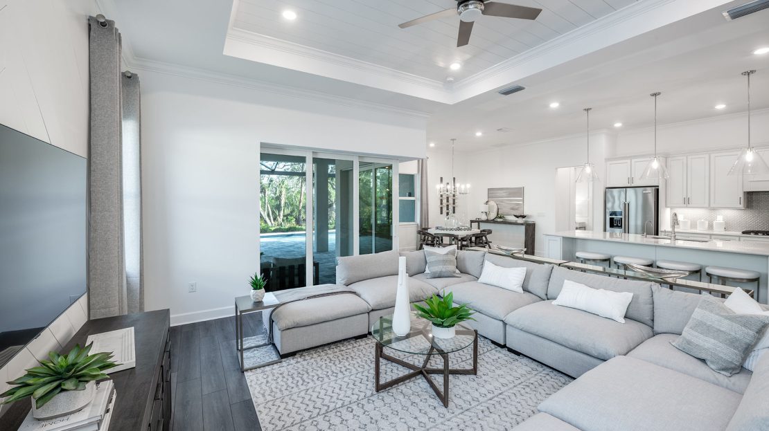 The Renown is known for its entertaining spaces. Enjoy the covered lanai and pool options. Inside, the home’s interior boasts clean lines and open spaces. Elegant and durable designer finished and plenty of natural light add style to the space.