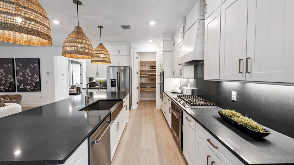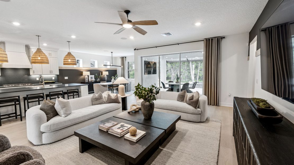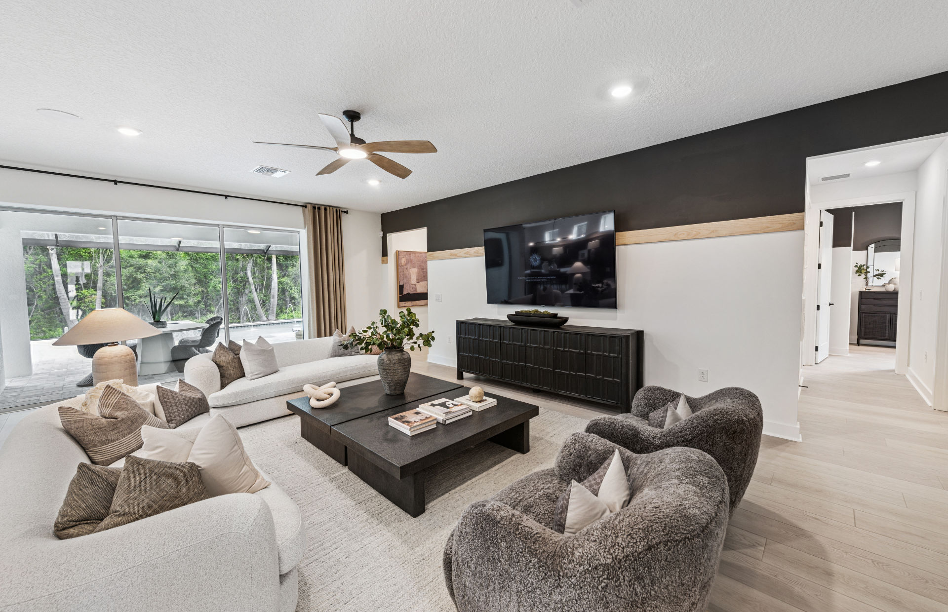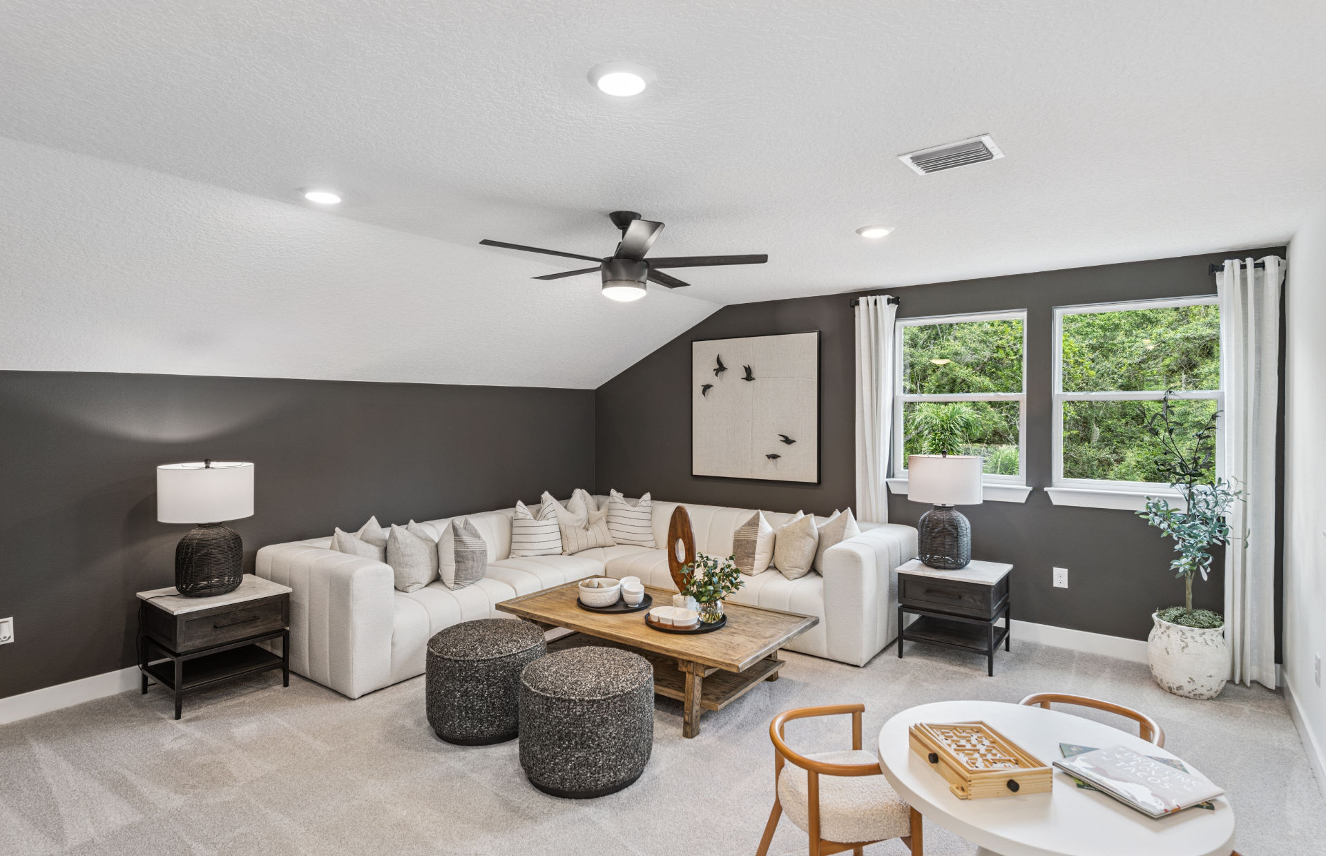 Able to accommodate both entertaining and relaxed everyday living, the Stellar Grand truly represents an achievement. The kitchen opens to the gathering room, dining area, and covered lanai, to suit both formal and informal socializing. And private spaces like the flex room, Owner’s Suite (with huge walk-in closet) or second story loft, let family members still find “me time.” In the garage, an extra bay can hold a golf cart.