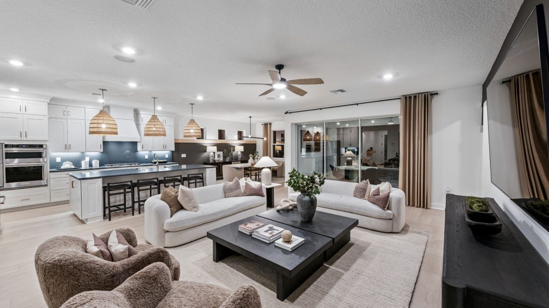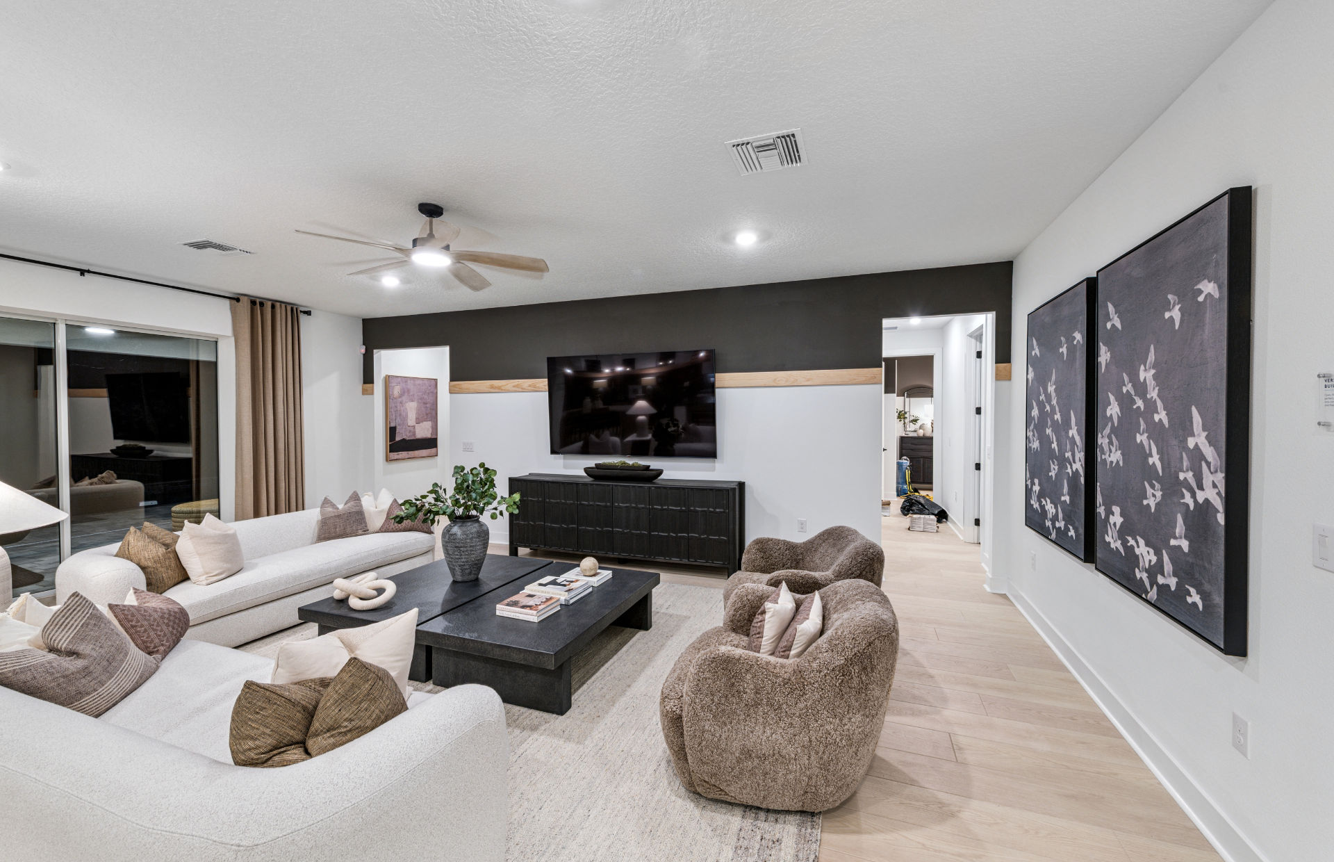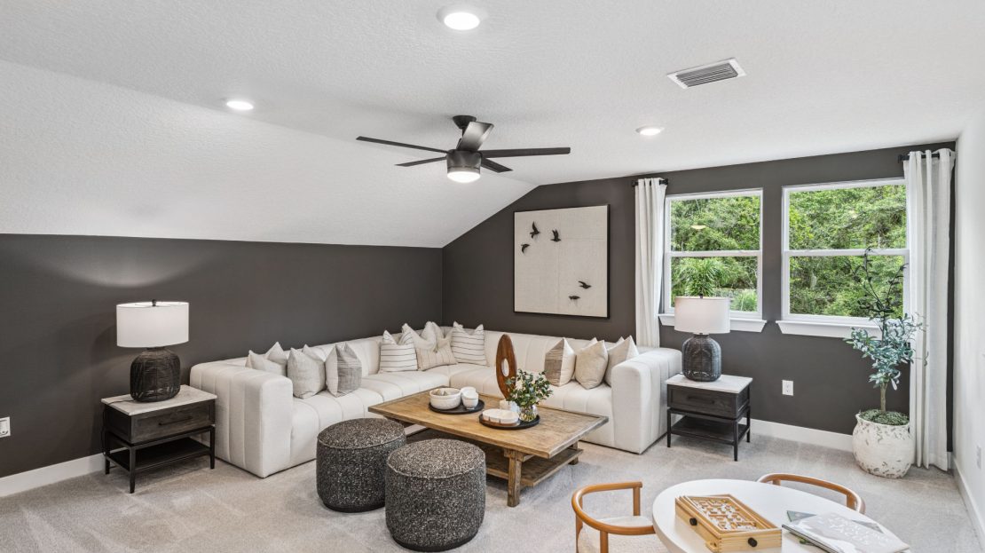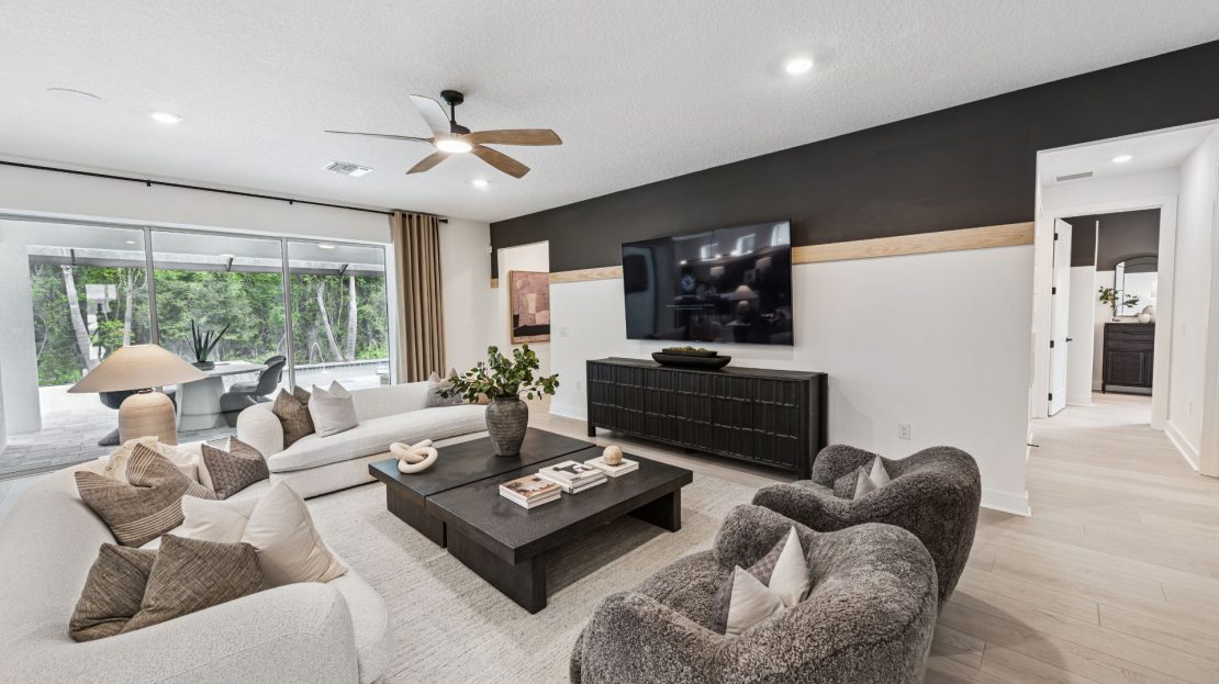 Able to accommodate both entertaining and relaxed everyday living, the Stellar Grand truly represents an achievement. The kitchen opens to the gathering room, dining area, and covered lanai, to suit both formal and informal socializing. And private spaces like the flex room, Owner’s Suite (with huge walk-in closet) or second story loft, let family members still find “me time.” In the garage, an extra bay can hold a golf cart.