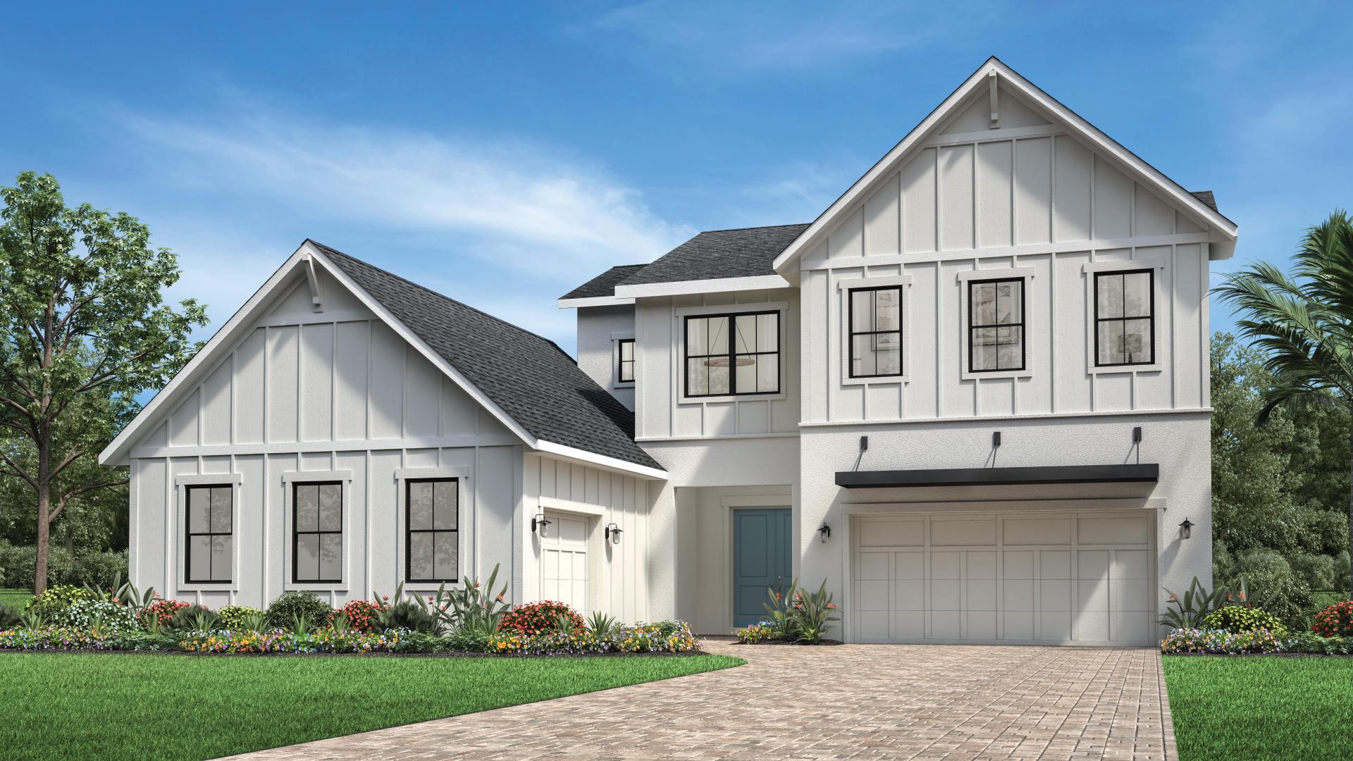 The all new pre-construction floorplan called the Marsanne Farmhouse, located at Laurel Pointe in Orlando, FL built by Toll Brothers. This Marsanne Farmhouse model has 5 beds, 5 baths, 1 half baths, 5091 sqft, 3 car garage, 2 story and priced from $1999000. This Single Family style home features 1st-Floor Primary Bedroom.