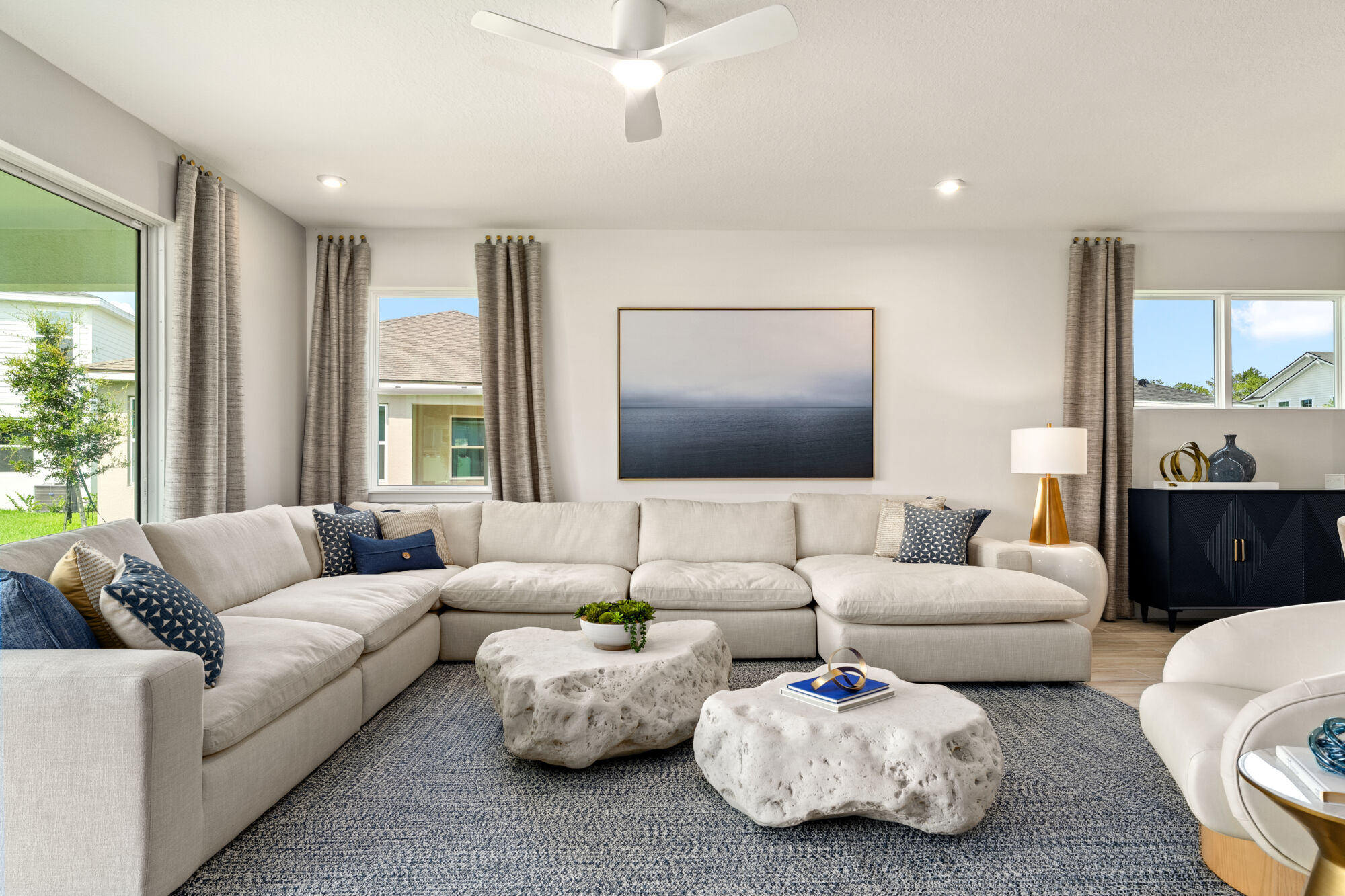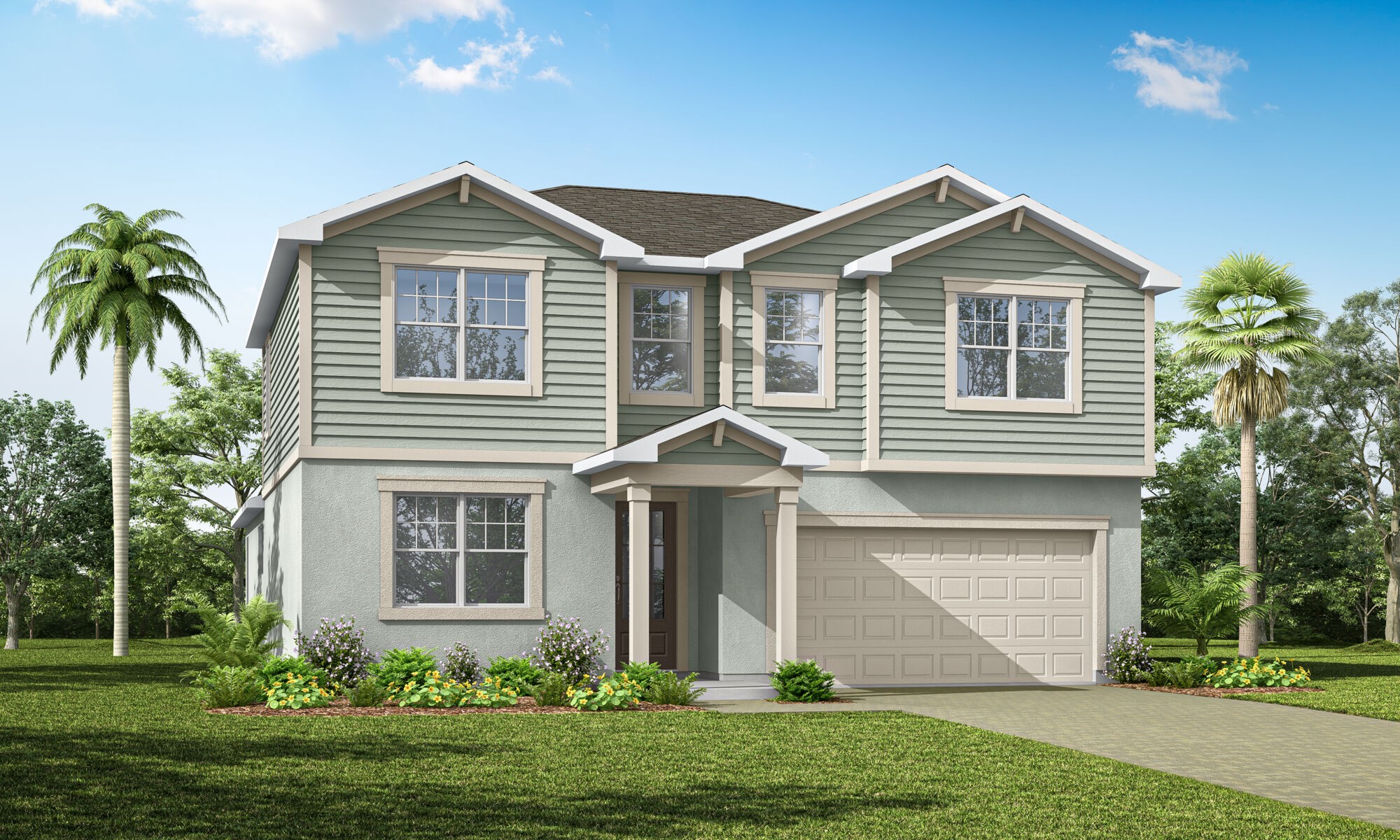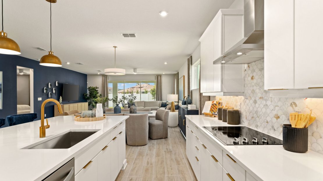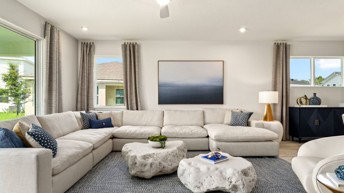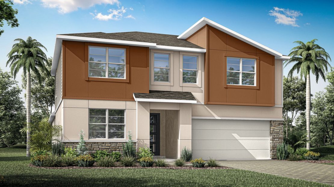 The 3,053 sq. ft. Olympic floorplan offers vast living space that’s thoughtfully planned to complement your lifestyle. From the foyer, a spacious and inspiring living area is revealed — with the kitchen, breakfast bar, dining area and Great Room offering a huge area in which to cook, eat, entertain or relax. Gathering space extends to the patio, which can optionally be upgraded to a covered lanai of two different sizes. Upstairs, an impressive loft area can be used for alternate family gatherings, such as a home theatre or personal arcade. The options are endless! A full bath and 3 bedrooms complete the second level, with bedrooms 2 and 3 each boasting walk-in closets.