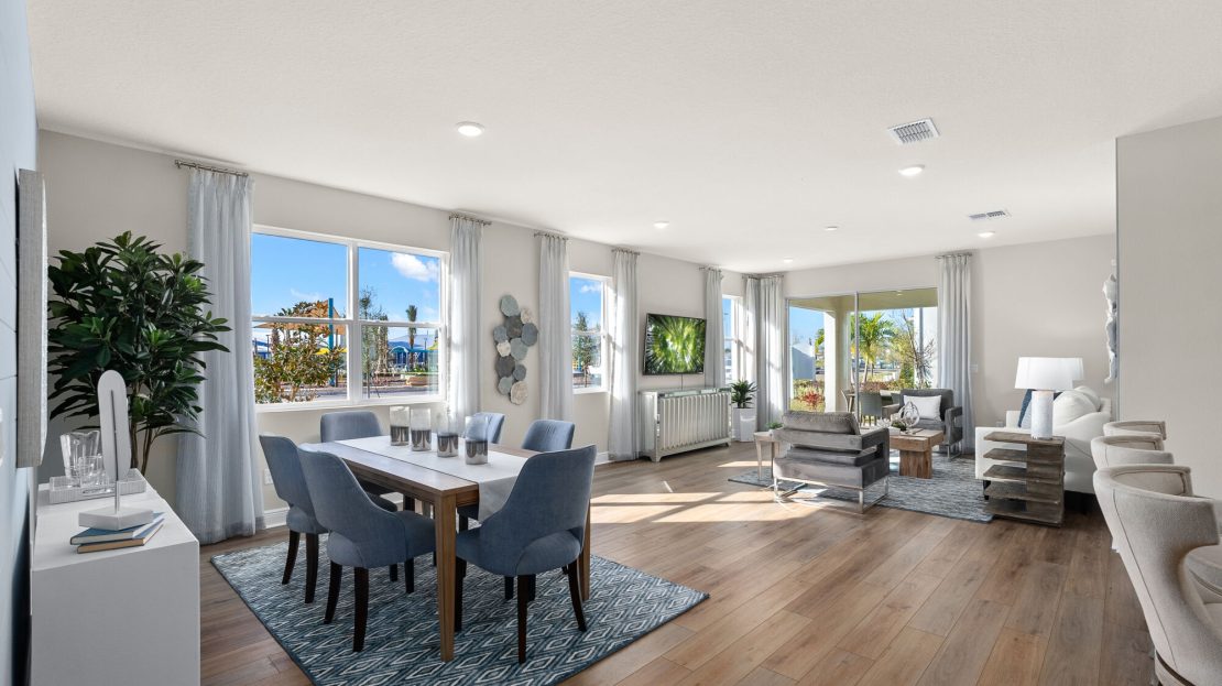 The 2,663 sq. ft. Pinnacle offers thoughtfully designed single-story living with 4 bedrooms, 3 baths and a 2-car garage. A walk-in pantry enhances the open, flowing space and connectedness of the kitchen, large dining area and expansive Great Room. A covered lanai provides excellent outdoor living space. The owner’s suite has a large walk-in closet and linen storage.