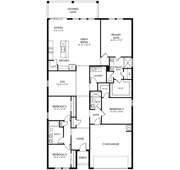 Denham Model at Wexford Cove in Ormond Beach, FL built by DR Horton-Tradition SeriesSM. Floorplan with 4 beds, 3 baths, 2336 sqft from 409990