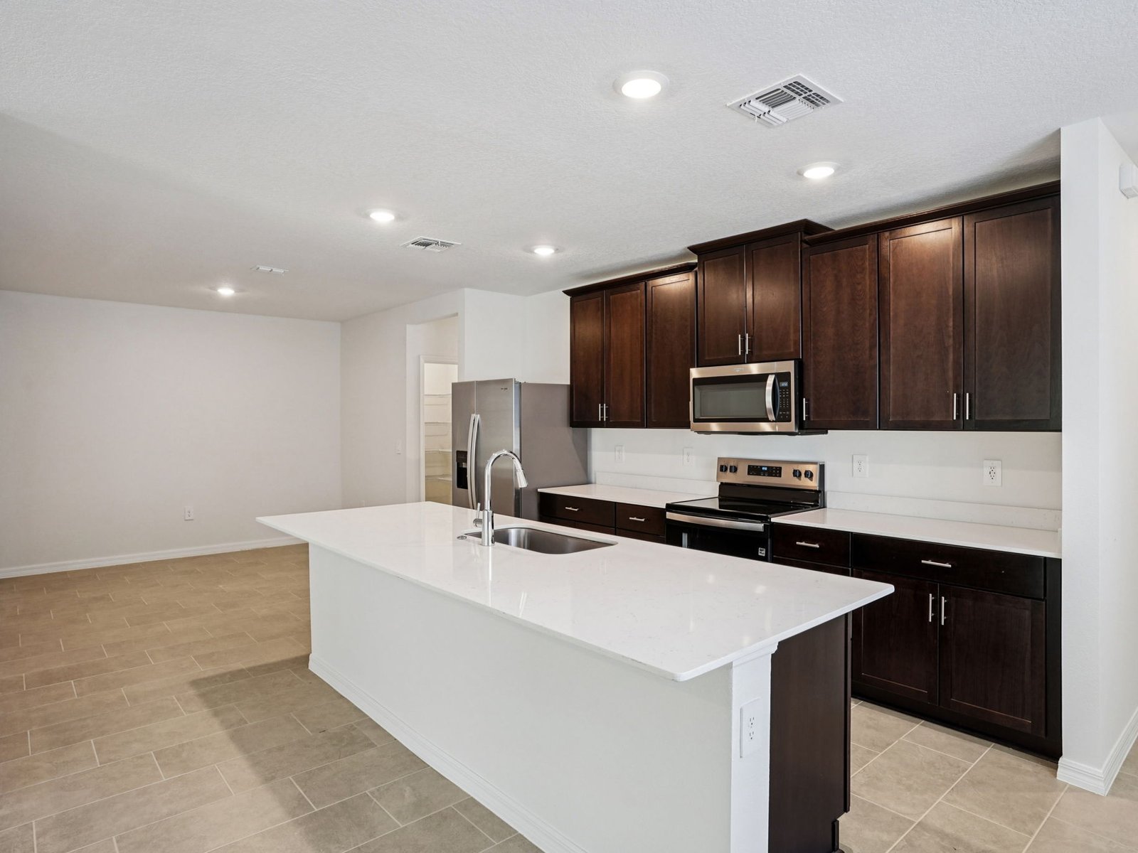 The foyer continues into the open-concept great room, kitchen, and dining room which provide plenty of space for entertaining.
