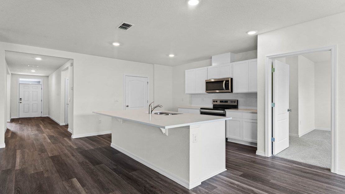 Entertaining is a breeze, as this popular single-family home features a living and dining in the heart of the home, with covered lanai just steps away in your backyard. The spacious kitchen features stainless steel appliances, a convenient island, and walk in pantry with ample storage.In every bedroom you’ll have carpeted floors and a closet in each room. Whether these rooms become bedrooms, office spaces, or other bonus rooms, there is sure to be comfort.The primary bedroom located in the rear of the home has its own attached bathroom that features a walk-in closet and all the space you need to get ready in the morning. Sharing a sink isn’t a worry with the double vanity. Two additional bedrooms share a second bathroom. This home also features a nice laundry room space with privacy doors and a two-car garage for parking or storage.Like all homes in Ormond Station, the Aria includes smart home technology, which allows you to control your home anytime with your smart device while near or away.