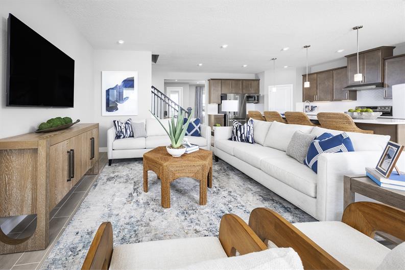 Welcome to the Laguna, where style meets everyday living with a smile! This two-story showstopper proves that practical can still be fabulous, starting with an 11’ kitchen island, you’ll have space for both cooking and homework supervision. The open-concept main level, with its 9’ ceilings flow effortlessly from the family room to the kitchen and dining area. The first-floor bedroom suite offers a private retreat for guests. The owner’s suite is your personal getaway, complete with dual walk-in closets and a spa-inspired bathroom that makes morning routines feel like a luxury experience. The versatile loft space adapts to your family’s needs, whether that’s a homework hub, movie night central or your peaceful reading escape. With five bedrooms, clever storage throughout, and indoor-outdoor living that brings the party potential, the Laguna isn’t just a house – it’s where your family’s best moments are waiting to happen!