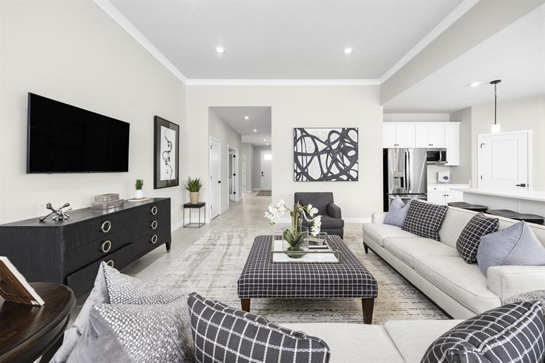 Welcome home to the Patterson, where Florida living gets an upgrade! This isn’t your average home – we’re talking about soaring 11’ ceilings that will make your Great Room feel like a palace. Picture yourself hosting the ultimate indoor-outdoor party, with massive sliding glass doors that transform your spacious 24’4” Lanai into an extension of your living space. The showstopper? A chef’s dream kitchen featuring a massive 9’9” island perfect for everything from Sunday meal prep to Friday night pizza parties. With four bedrooms (including a luxurious Owner’s Suite that feels like a 5-star resort) and the option to turn one bedroom into the home office of your dreams, The Patterson isn’t just a house – it’s your ticket to living the sweet life, Florida style!