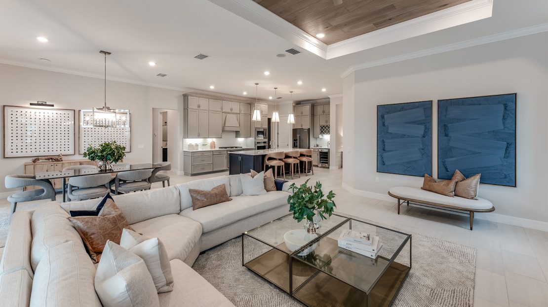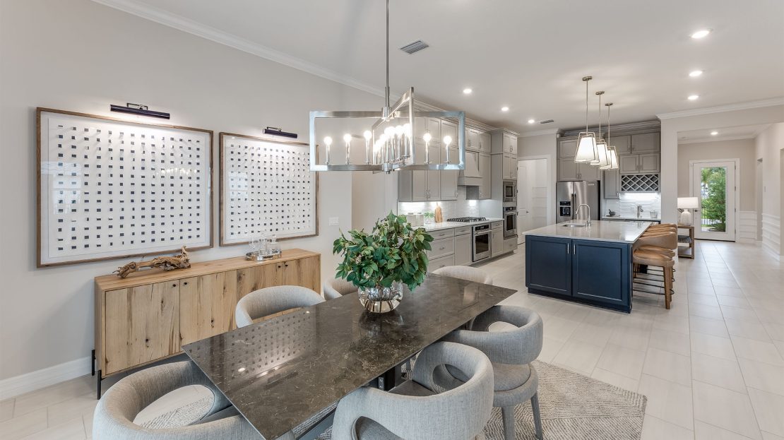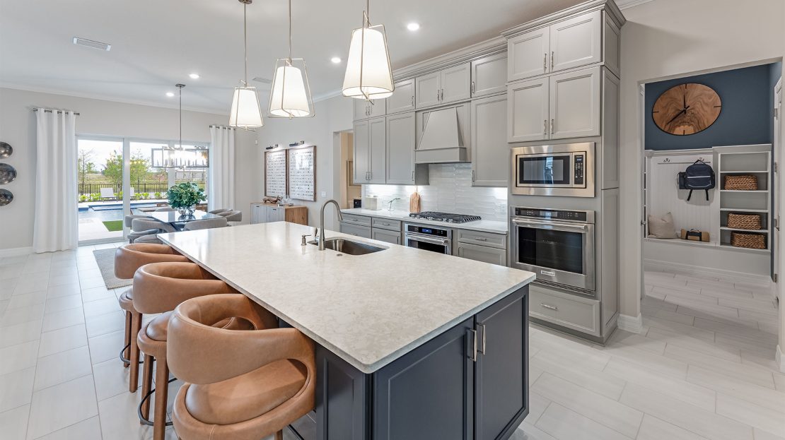 The Reverence is known for its inviting floorplan, fit for comfortable living and entertaining. The elegant Owner’s Suite boasts an oversized walk-in closet for generous storage, in addition to the bathroom with dual sink vanity. This new home makes entertaining easy with a large island kitchen opens to the gathering room, café, and covered lanai.