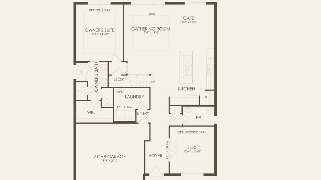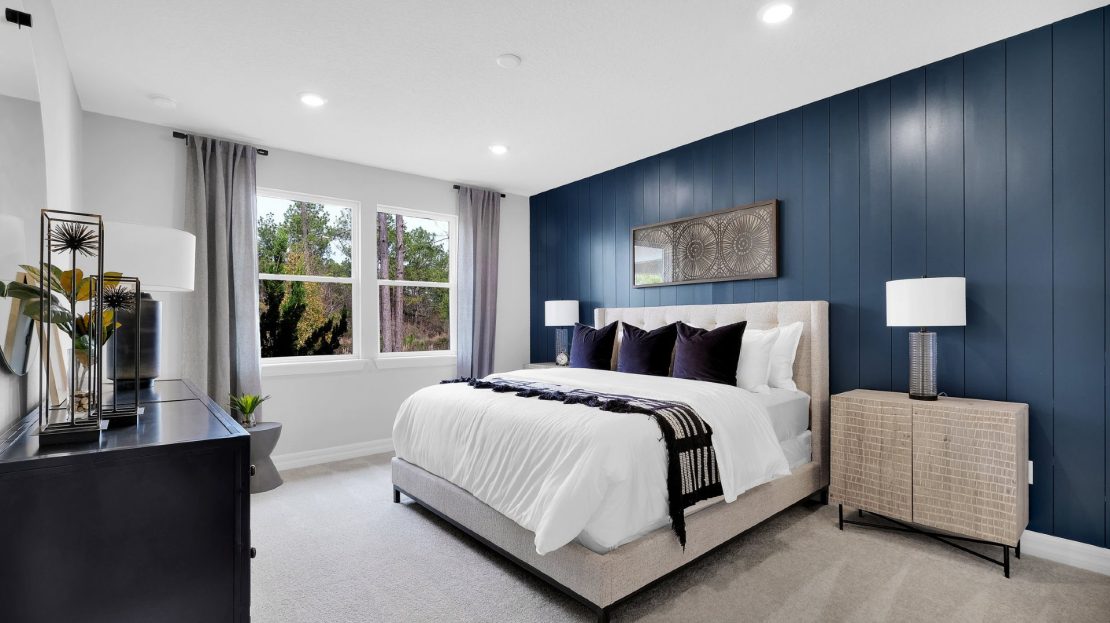The Whitestone new home design is known for its spacious gathering room, which connects to the covered lanai, café, and open kitchen, making this home perfect for entertaining. A flex room on the main level could be used as a home office, den, or additional bedroom. The three bedrooms upstairs are complemented by a loft, perfect for a movie night.