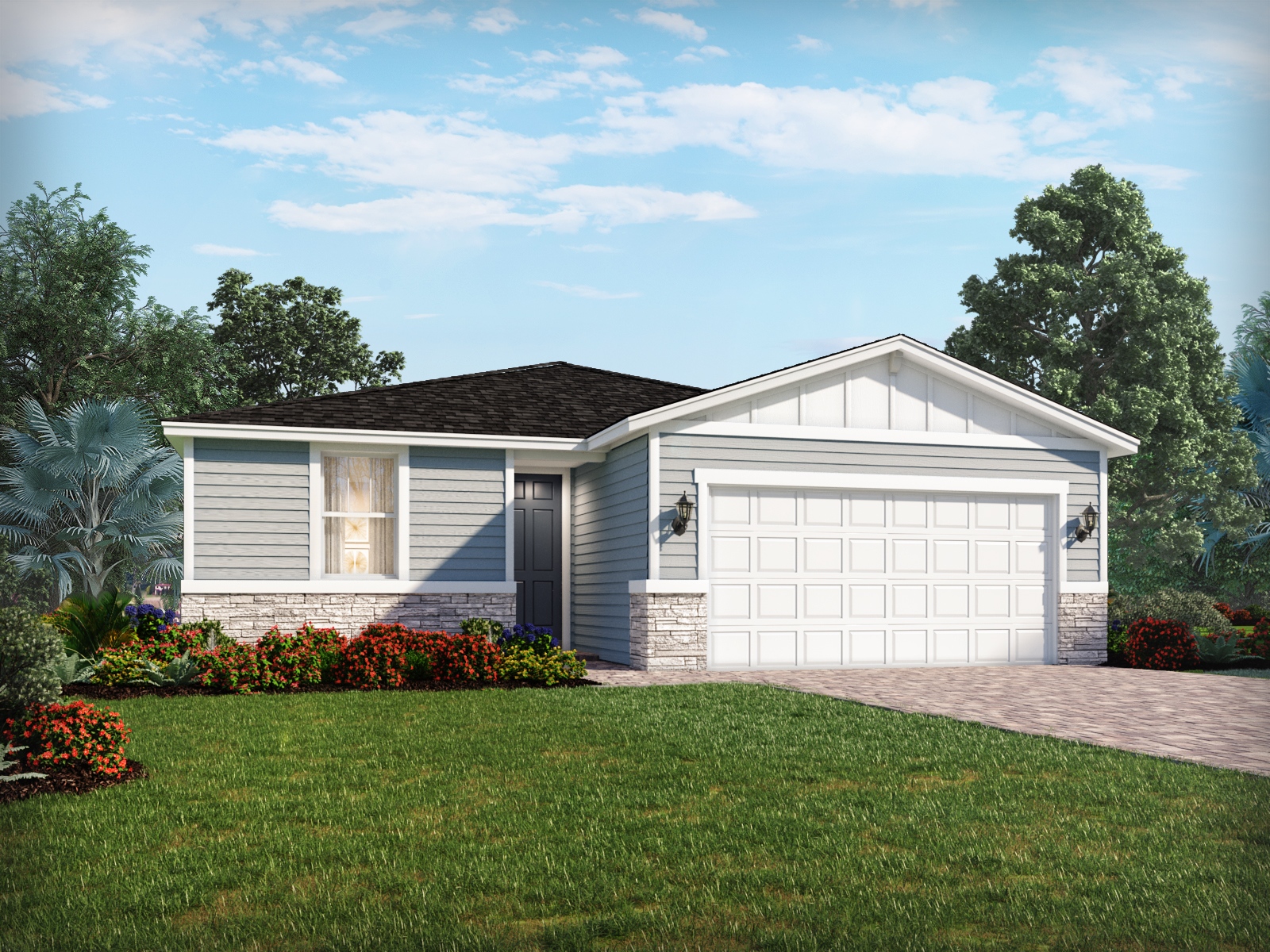 Bluebell Model at Colbert Landings in Palm Coast, FL built by Meritage Homes. Floorplan with 3 beds, 2 baths, 1491 sqft from $332,990