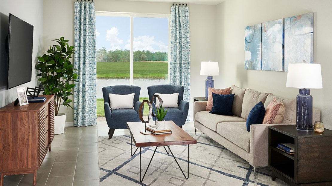 The Daphne model at Colbert Landings features 3 bedrooms, 2 bathrooms, 1695 sqft, 2 car garage and is a 1 story home. This home priced from $349,990. Colbert Landings is a new pre-construction single-family home community in Palm Coast Florida built by Meritage Homes.