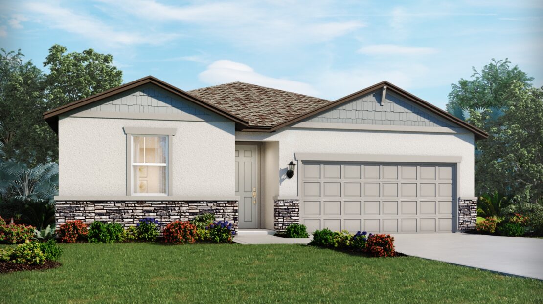 The Corsica floorplan at Coasterra offers an open-concept floorplan with 4 bedrooms, 2 bathrooms and a 2-car garage. Enjoy the chef-inspired kitchen that overlooks the great room. Entertain on the covered lanai.