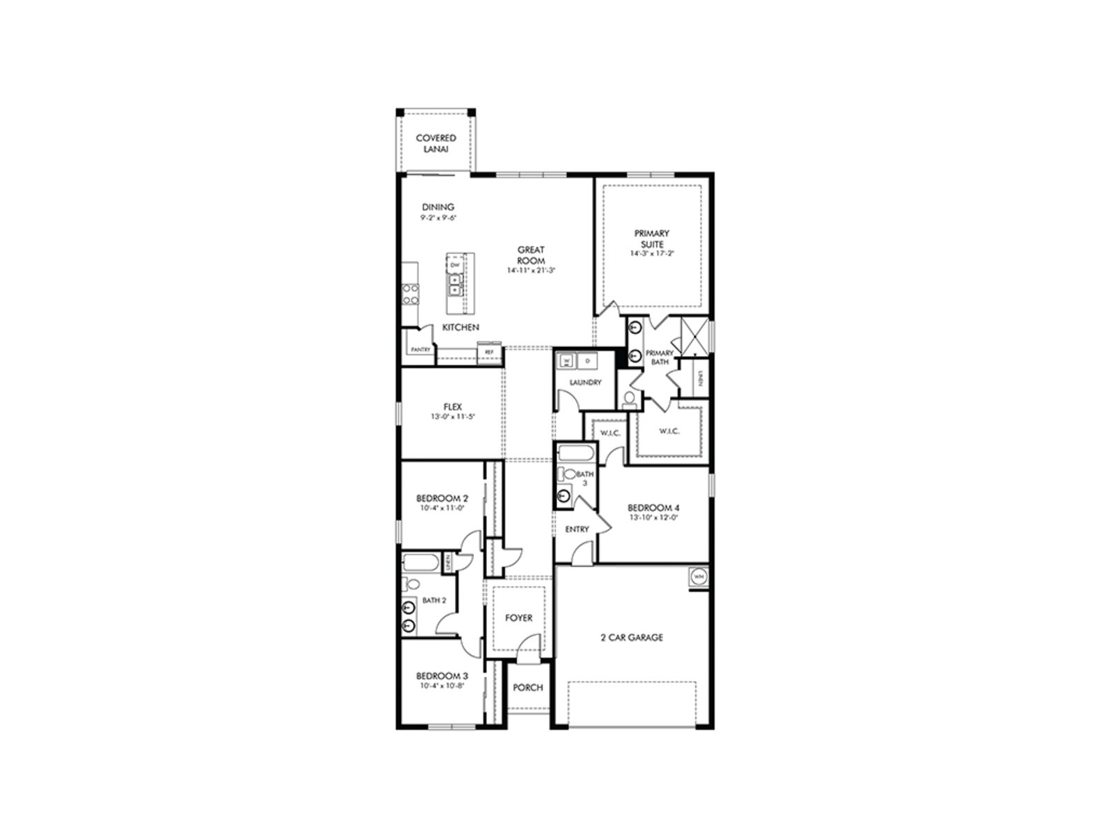 The Modena offers an open-concept floorplan with a flex space fit for an office or dining space. Enjoy cooking in the open kitchen with a large work island or entertaining on the covered lanai. Unwind in the private primary suite.