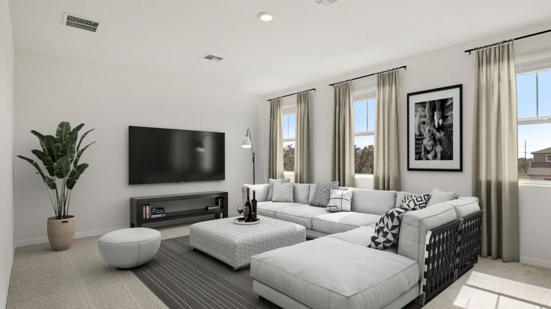 The San Marino floorplan offers an open-concept floorplan with 5 bedrooms, 3.5 bathrooms and 2-car garage. This home features a downstairs primary suite and a home office. Entertain in the open upstairs loft.