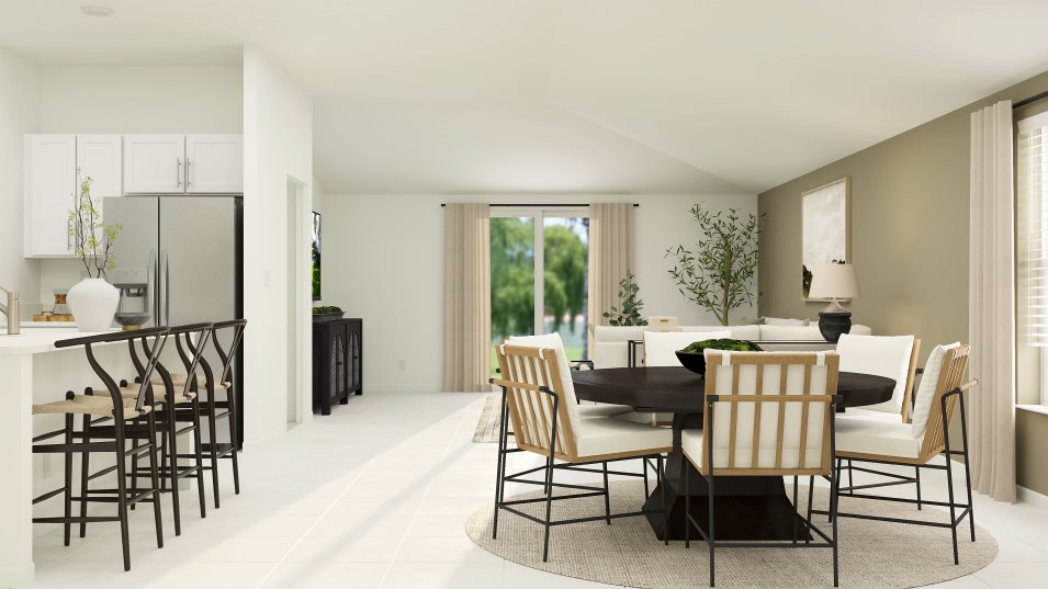 This convenient single-story plan opens to an inviting dining room with shared access to the kitchen and family room, ideal for seamless modern living. Tucked behind the kitchen, three secondary bedrooms enjoy their own wing of the home, while the expansive owner’s suite is ideally situated in the back corner, a peaceful retreat.