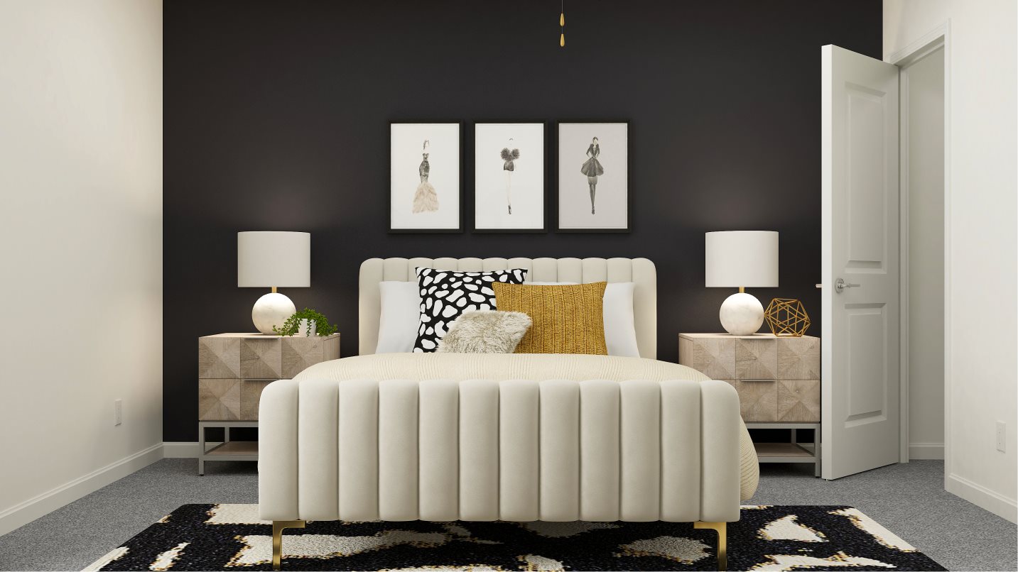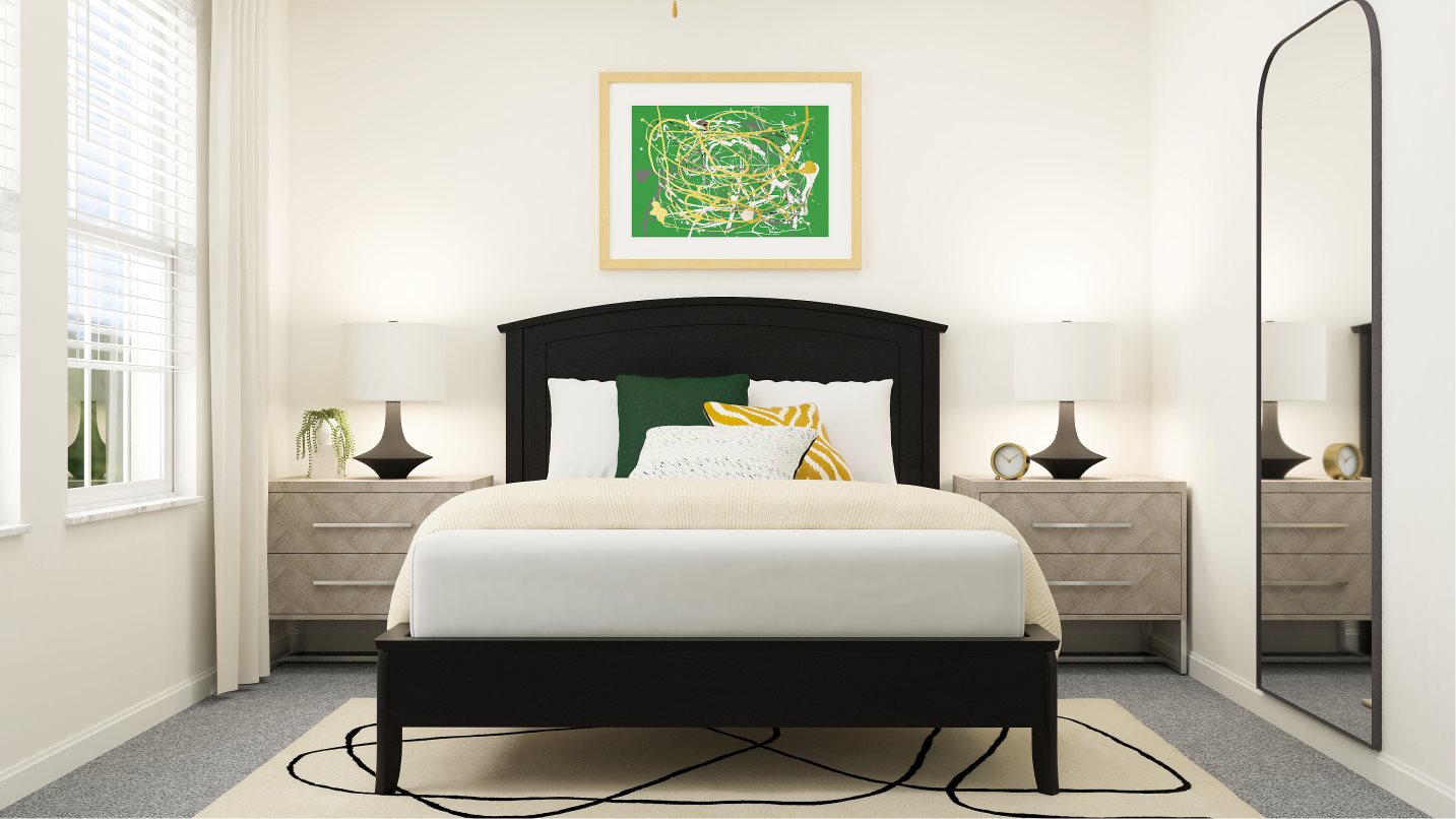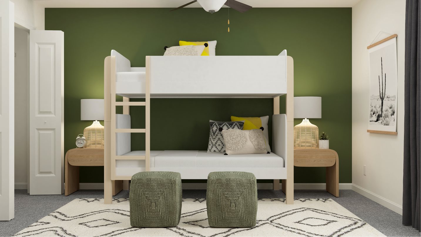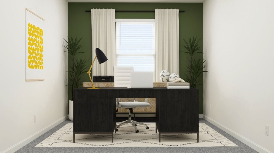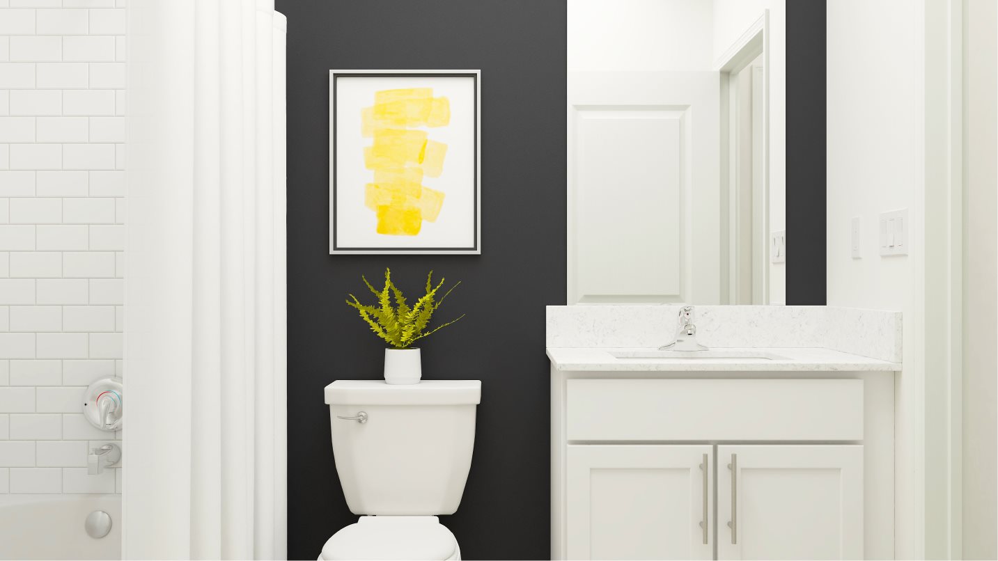 This two-story home is the largest plan available in the collection. The first floor is brightened by a contemporary open design that unifies the kitchen, family room and dining room. Off the foyer is a versatile bedroom and flex room, while the owner’s suite is nested in the back for privacy. Upstairs are the remaining four bedrooms and an expansive loft.