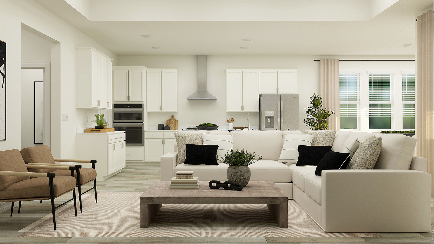 This modern single-story home boasts an airy layout that effortlessly unites the kitchen, family room and nook. A study is ready to be transformed to meet the homeowner’s needs, while three bedrooms provide space for the whole family. Plus, indoor and outdoor living opportunities on the spacious covered patio.