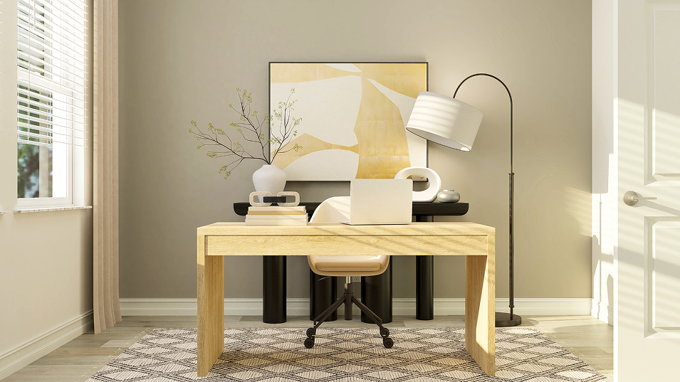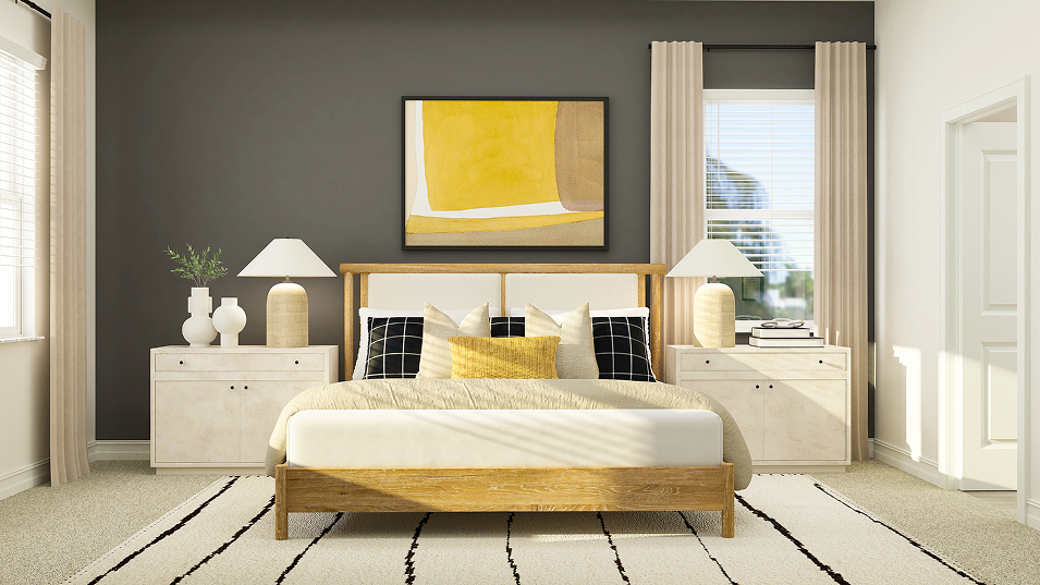 The family room, kitchen and dining room meet in a convenient and contemporary open floorplan at the heart of this single-level home. A versatile den is ideal as a home office or workout space. The owner’s suite is privately located at the back, while three secondary bedrooms near the entry provide plenty of room for a growing family.