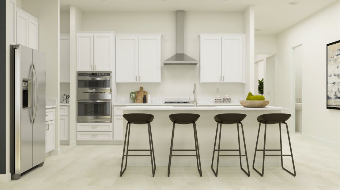 This spacious single-story emphasizes convenience with a versatile flex room that adapts to the homeowner’s hobbies, as well as an open floorplan among the kitchen, family room and dining room with access to a spacious covered patio. Adjacent to this space, is the expansive owner’s suite, which features an oversized walk-in closet. An additional bedroom with a private bathroom is perfect for guests.