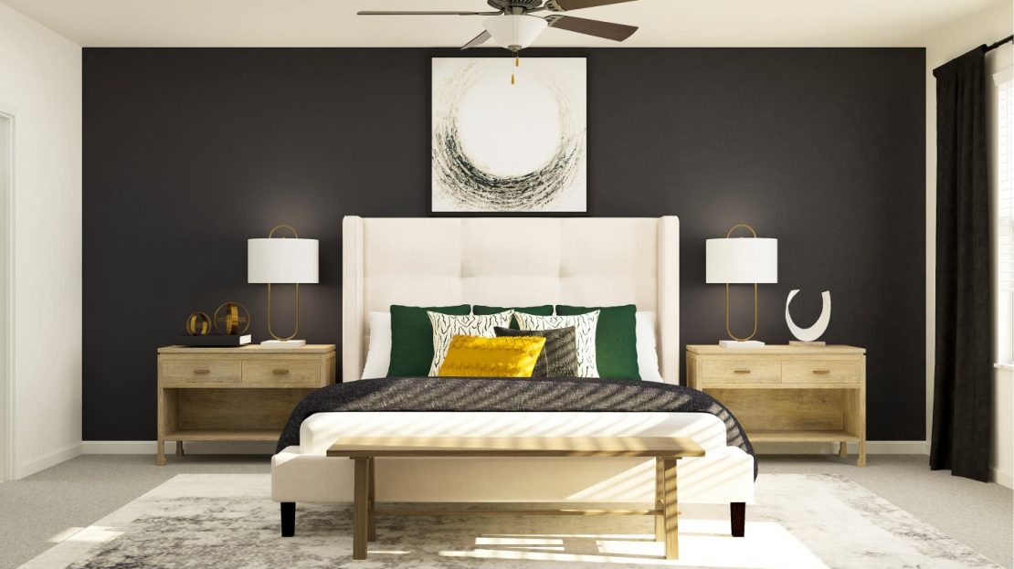 This two-story home is the largest plan available in the collection. The first floor is brightened by a contemporary open design that unifies the kitchen, family room and dining room. Off the foyer is a versatile bedroom and flex room, while the owner’s suite is nested in the back for privacy. Upstairs are the remaining four bedrooms and an expansive loft.
