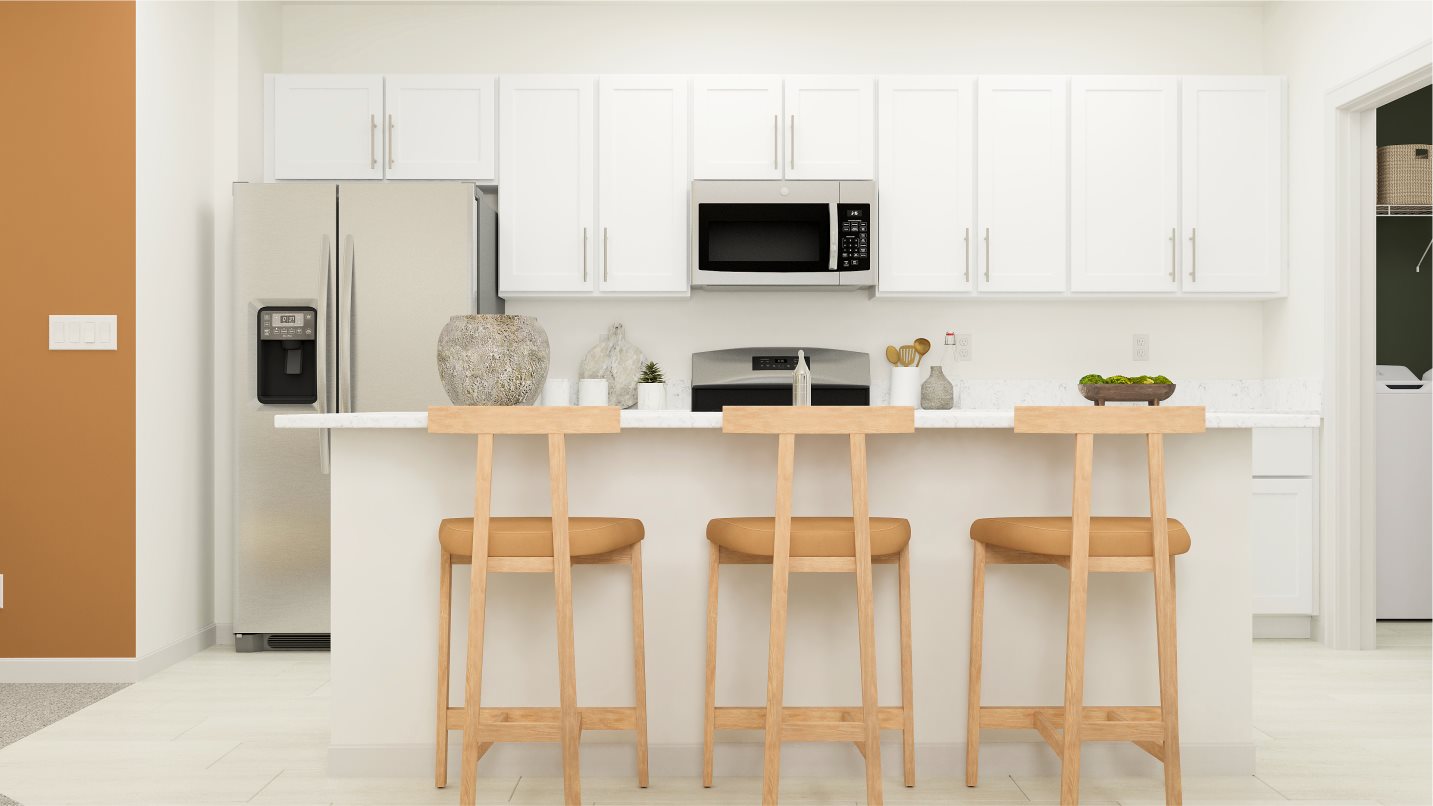 This two-story home divides space for optimal tranquility. The first floor showcases an open design that encompasses the dining room, kitchen and living room for simplified family living and entertaining. Nearby, the owner’s suite is separate from the upstairs bedrooms and features a private bathroom. The second level hosts four additional bedrooms and a versatile loft.