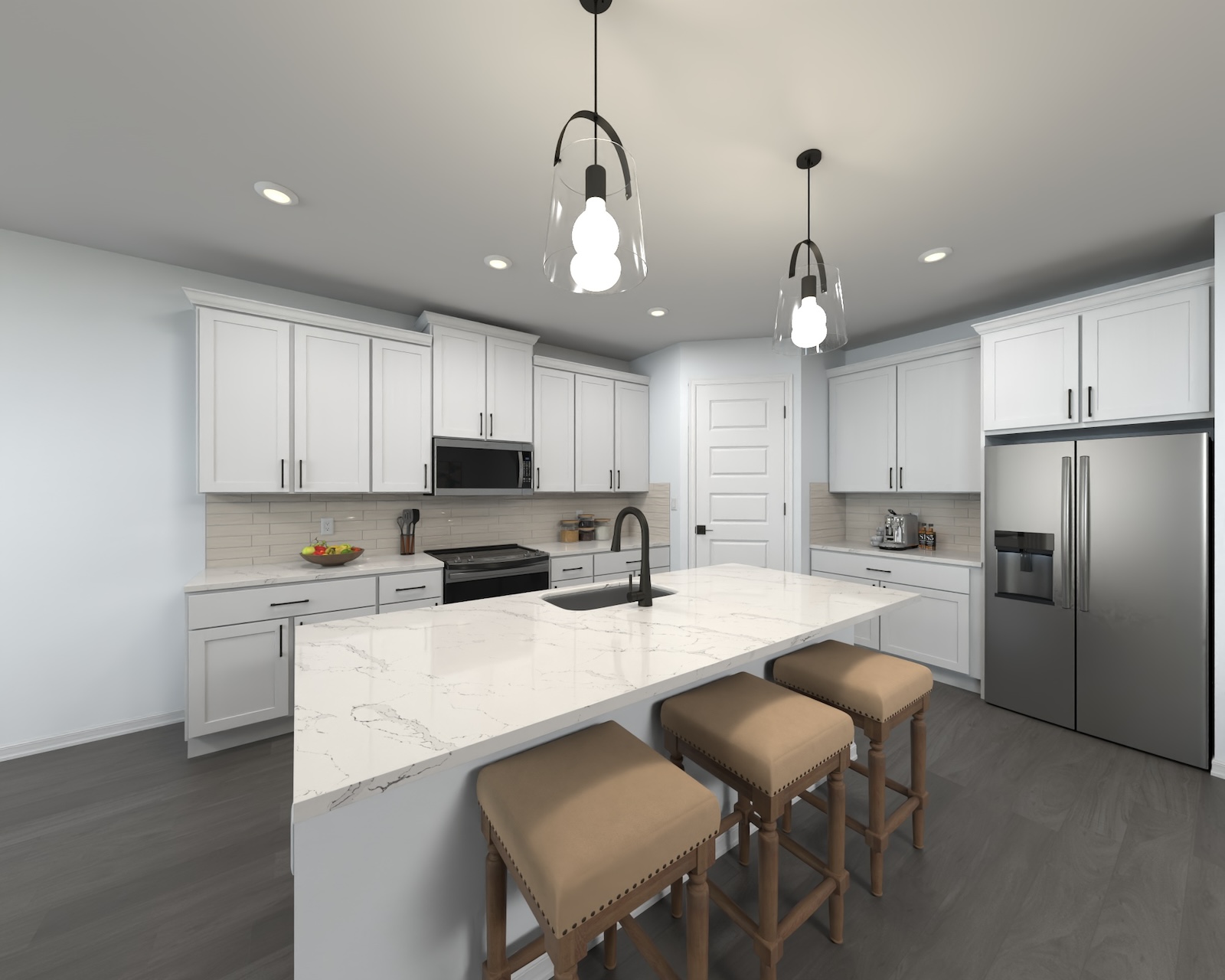 Use the Paloma’s first-floor flex space as a formal dining room for hosting family gatherings. A versatile upstairs game room ensures everyone has a place to work, play and relax. The spacious, open kitchen overlooks the great room and covered lanai