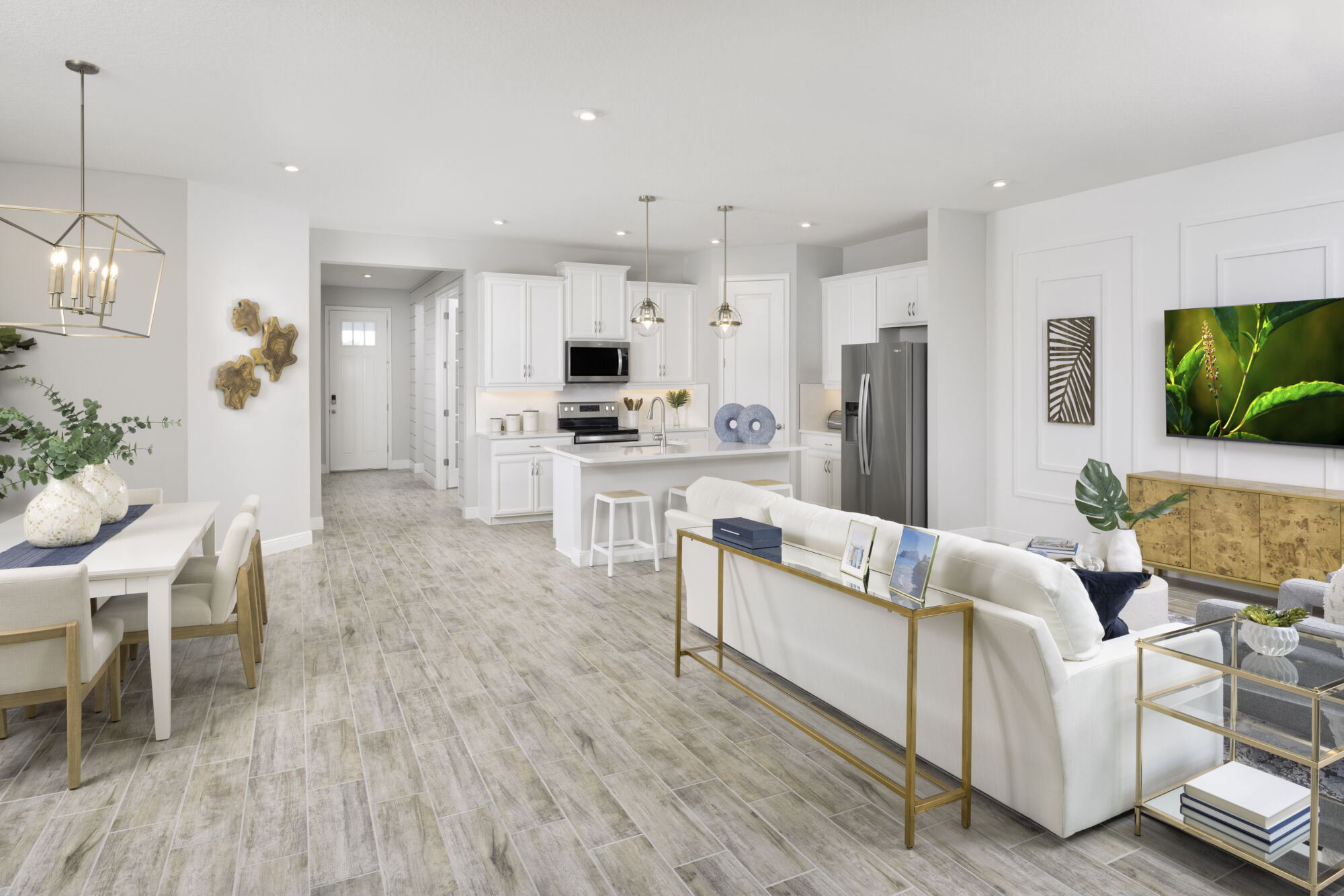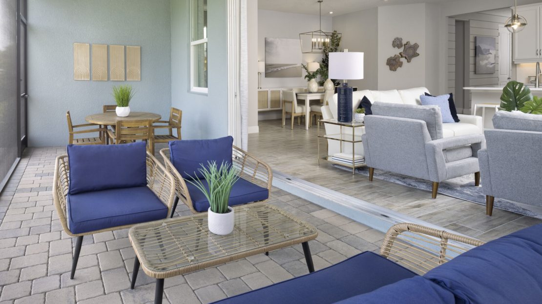 From the front porch to the back lanai, the 2,005 sq. ft. Glades floorplan has indoor and outdoor living space to spare. Masterfully arranged rooms around an open-concept central living area provide the ideal home for entertaining or simple relaxing together as a family. When it’s time to study, work remotely or enjoy hobbies, a separate flex room offers an additional versatile living space. The owner’s suite has its own luxurious bath and a large walk-in closet.