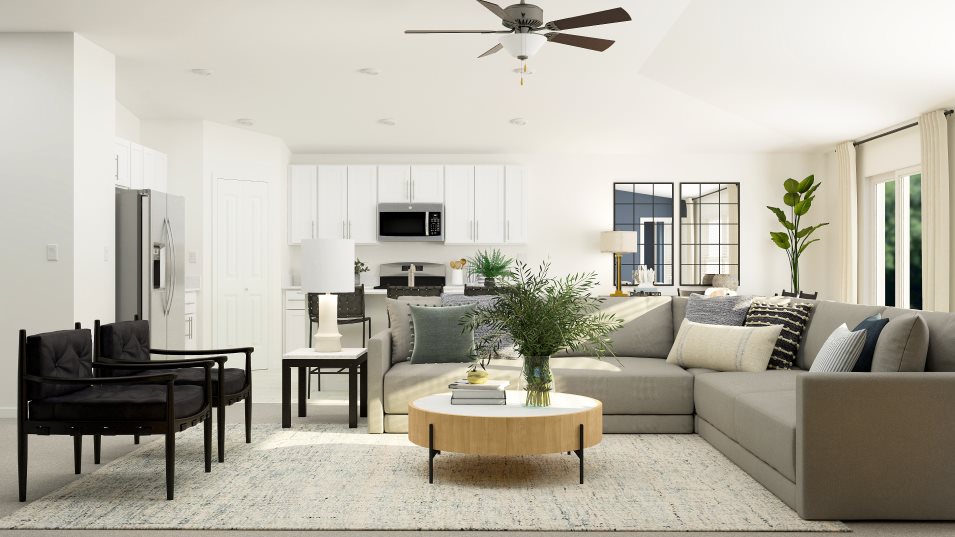 An open floorplan is shared among the family room, dining room and kitchen in this single-story home. Separate from three secondary bedrooms, the serene owner’s suite features a spa-like private bathroom designed for tranquil shared living. Completing the home is a two-car garage for storage and other versatile needs.