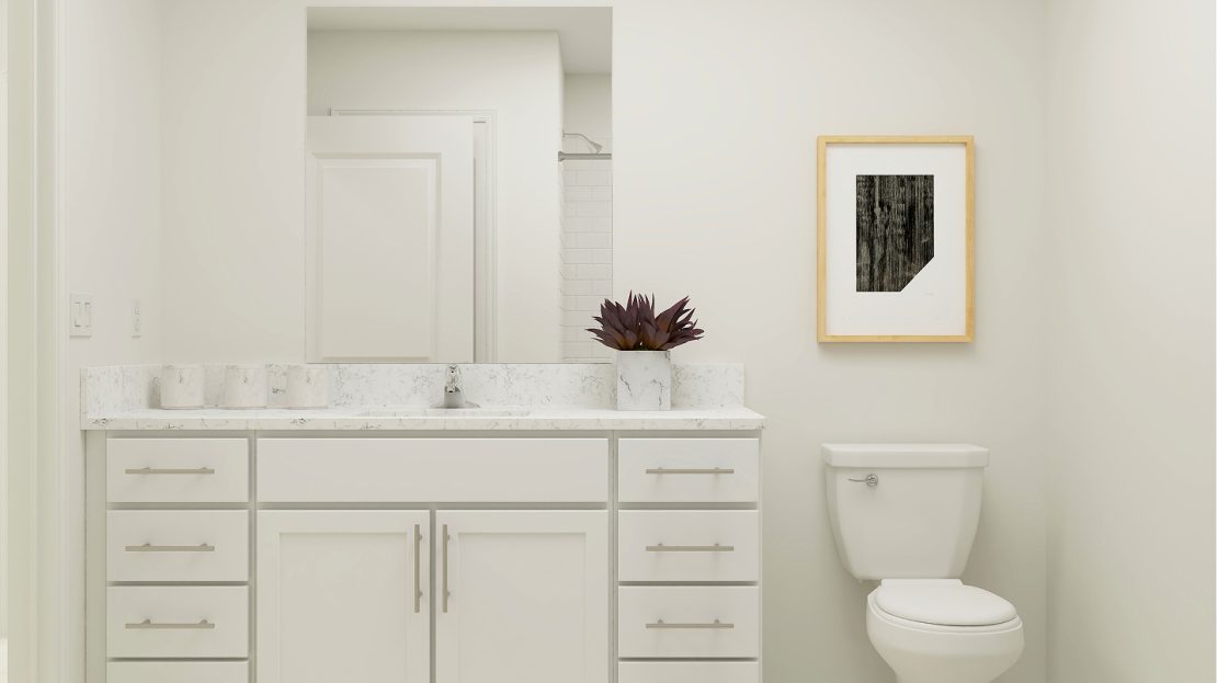 This spacious single-story showcases an open design among the kitchen, dining room and family room, adjacent to a versatile flex space that adapts to the family’s needs. Two of the four bedrooms that frame the space feature private bathrooms, one being the expansive owner’s suite, which also includes a walk-in closet.