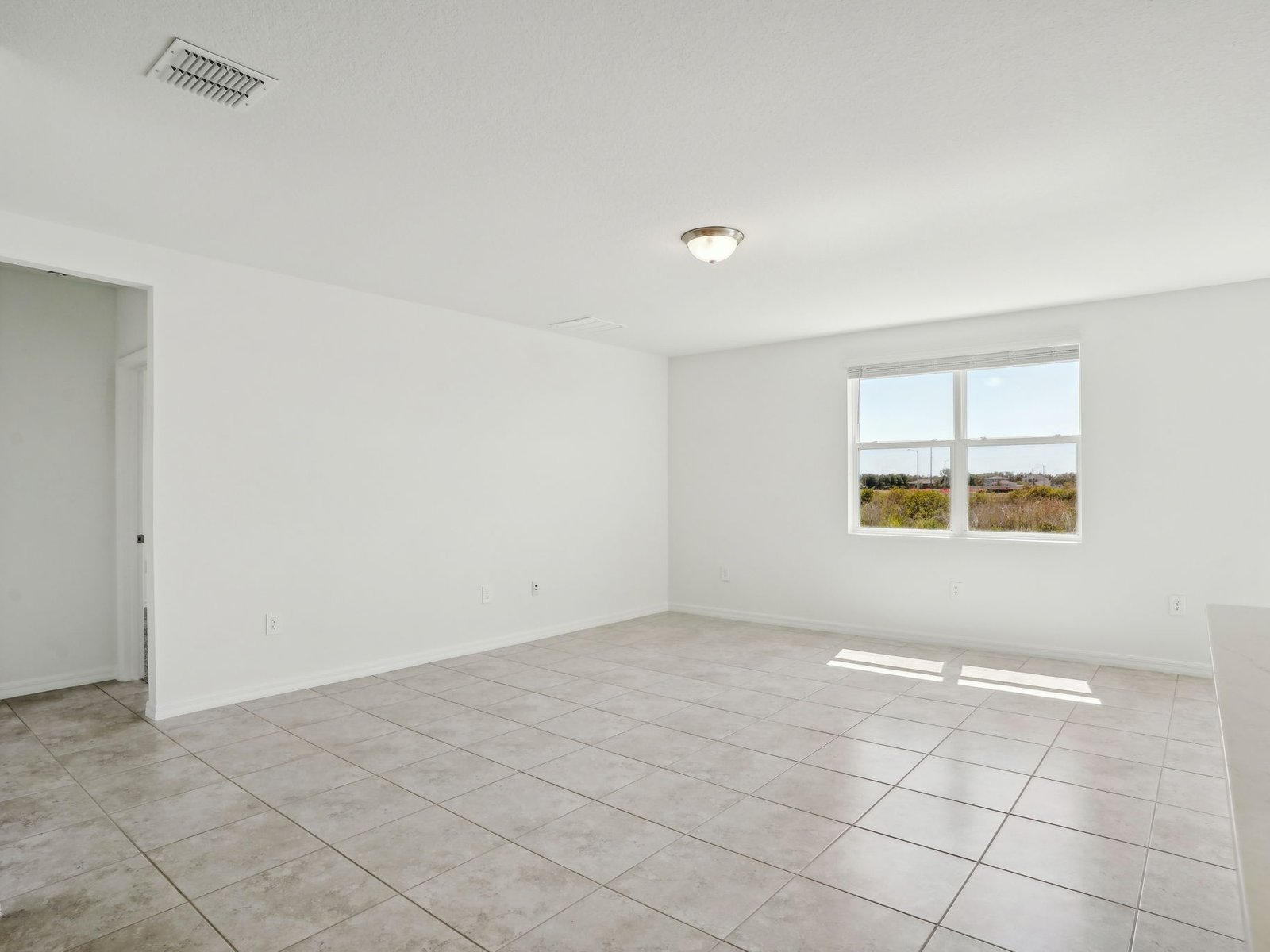 Open floor plan creates a unified living space with a large great room that overlooks the kitchen.