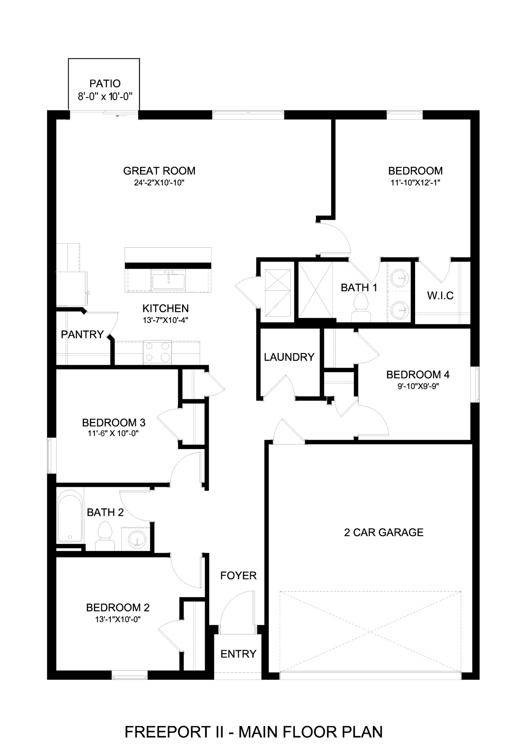 Panama model floorplan at West Port Single Family Homes priced from $299990 with 4 beds, 2 baths, 2 garage & 2021 sqft