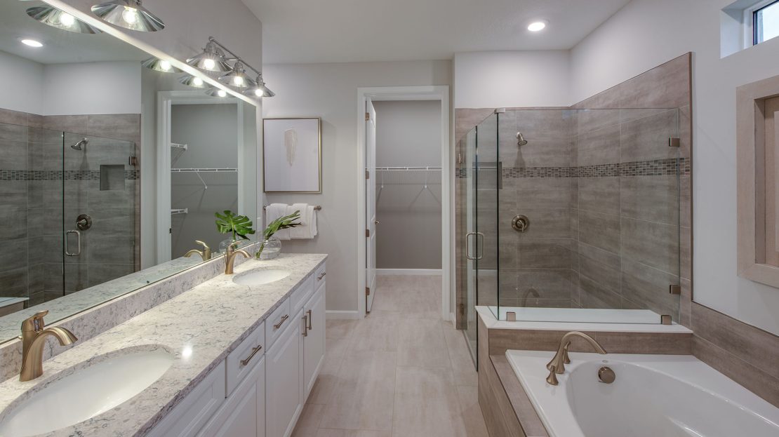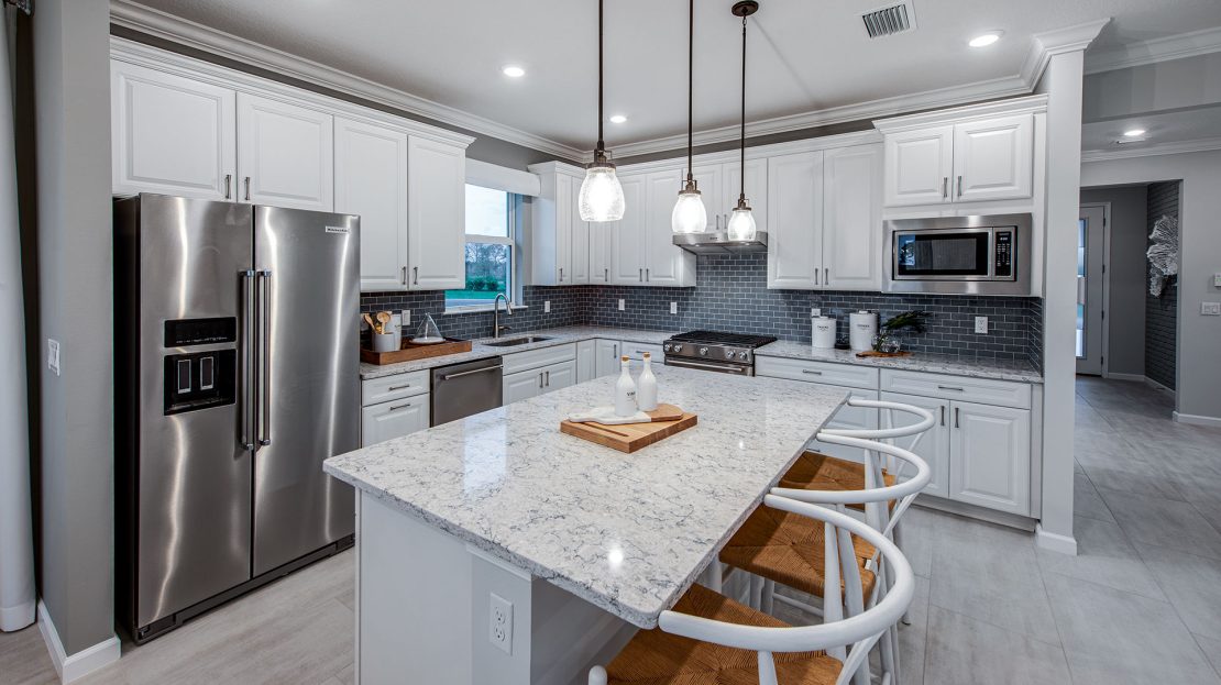 Prosperity’s new home design features an open living space filled with natural light. The spacious gathering room flows seamlessly into the kitchen, which boasts stylish Whirlpool® appliances making this space both elegant and functional. A flex room off the foyer could be an office, den, or additional bedroom.