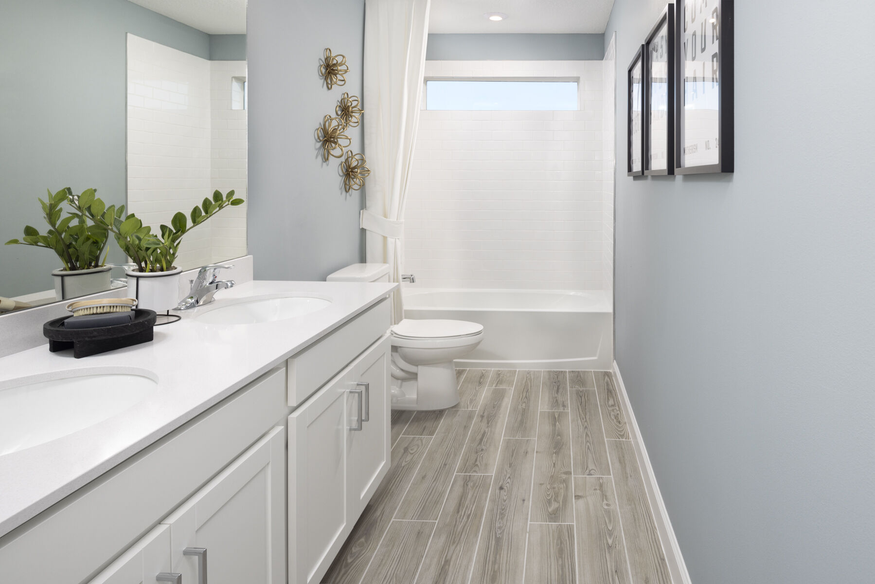 The Mount Rainier is a 3,019 sq. ft. 2-story home that offers 4 bedrooms, 2.5 baths and 3-car garage. Upon entering the foyer, you are welcomed to an open floorplan. The spacious kitchen offers an extensive walk-in pantry and an island breakfast bar. The kitchen overlooks the dining area and Great Room. A sliding glass door in the Great Room leads to the covered lanai. The second floor is complete with a loft, owner’s suite and bath, three additional bedrooms and a full bath. The roomy loft offers a flexible living space. The owner’s suite boats a large walk-in closet and is connected to the owner’s bath with a spacious shower and dual sink raised vanity. All of the secondary bedrooms have walk-in closets and share a full bath with double sinks. The laundry room is located upstairs for added convenience.