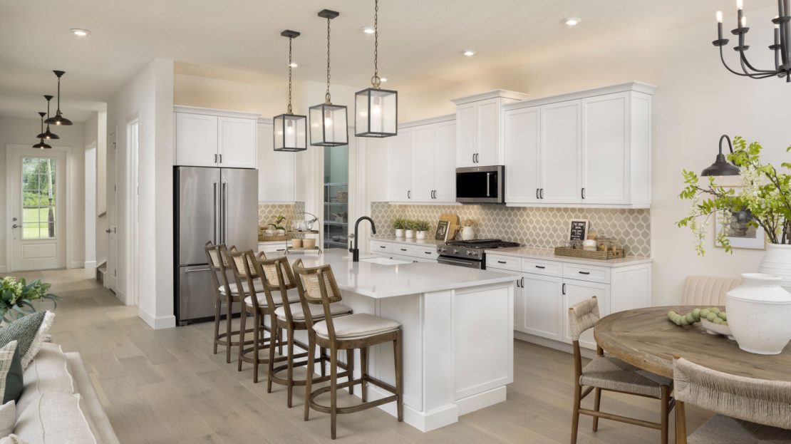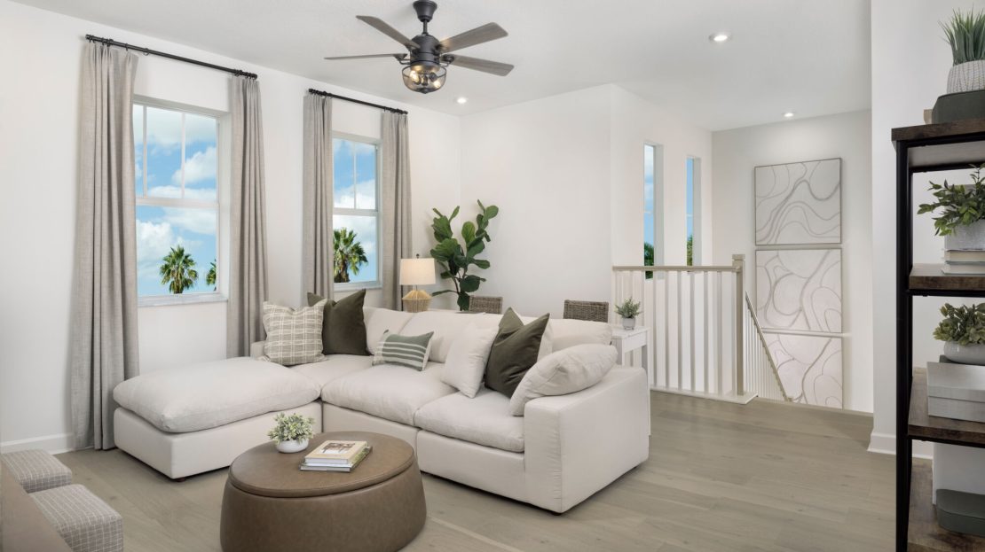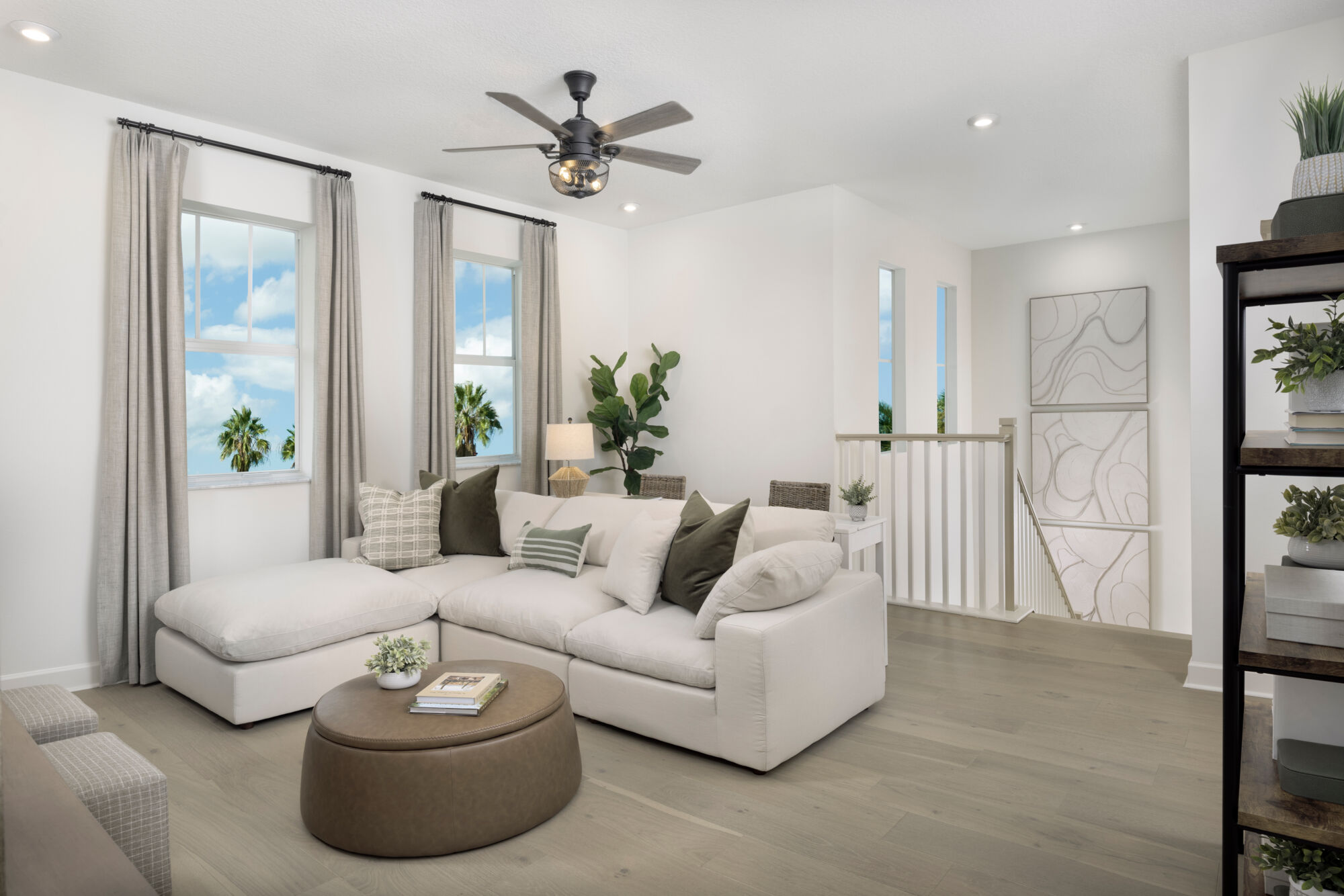 The Canopy is a 2,814 sq. ft. 2-story home that offers 4 bedrooms, 3.5 baths and a 2-car garage. The first floor of this home features a welcoming foyer with a beautiful flex room that can be used as a game room, office or playroom along with a convenient powder bath. The kitchen is open to the Great Room and dining room, and the covered lanai extends the living outdoors. The second floor is complete with a loft, three additional bedrooms and two full baths. The owner’s suite is a relaxing retreat with a private bath and a walk-in closet.