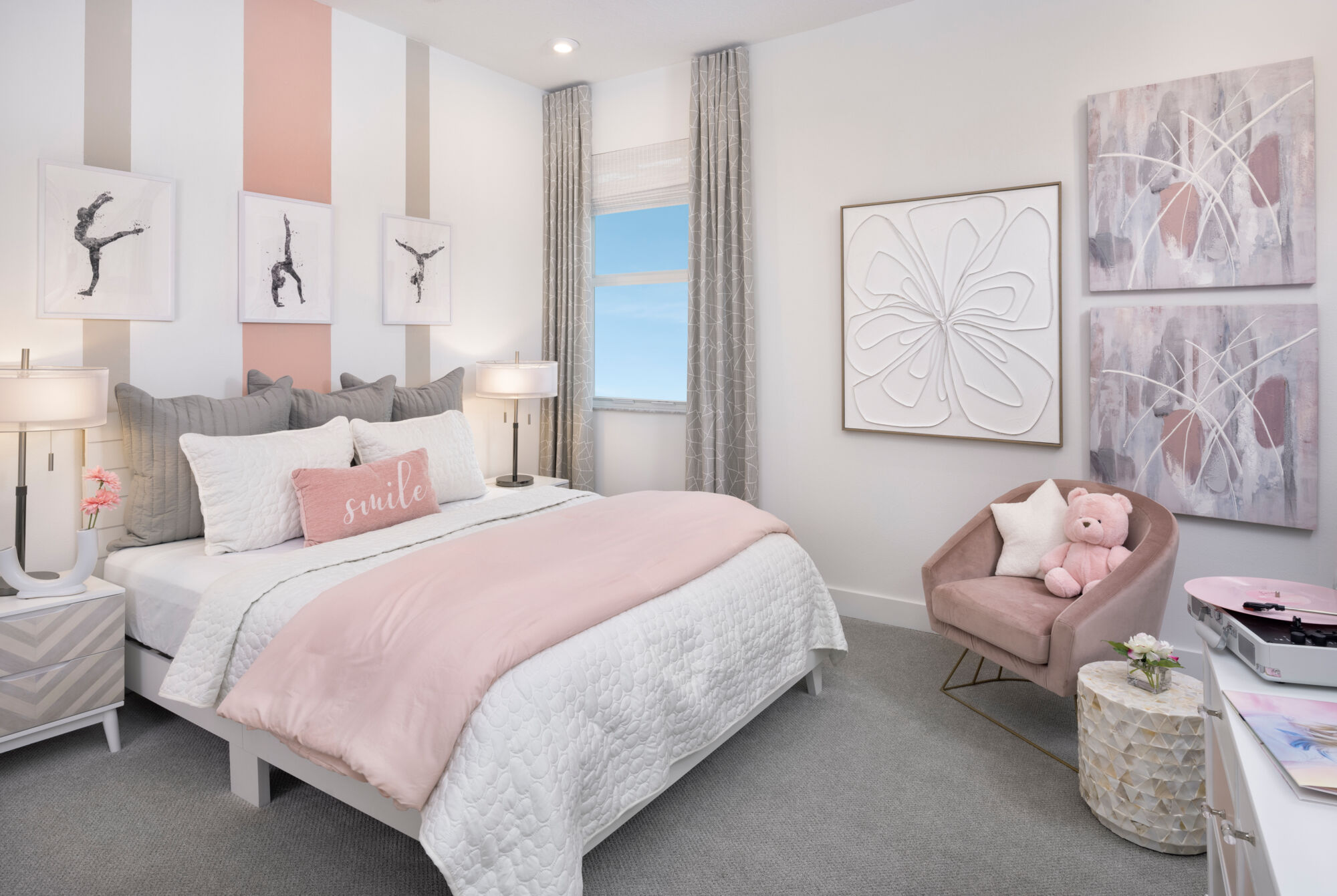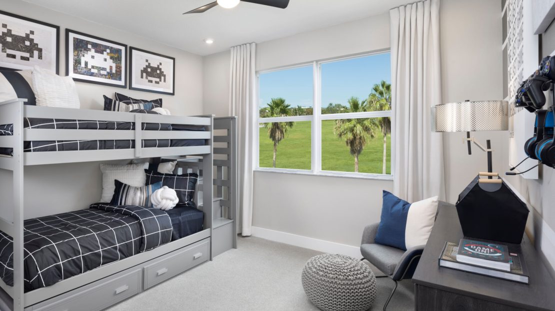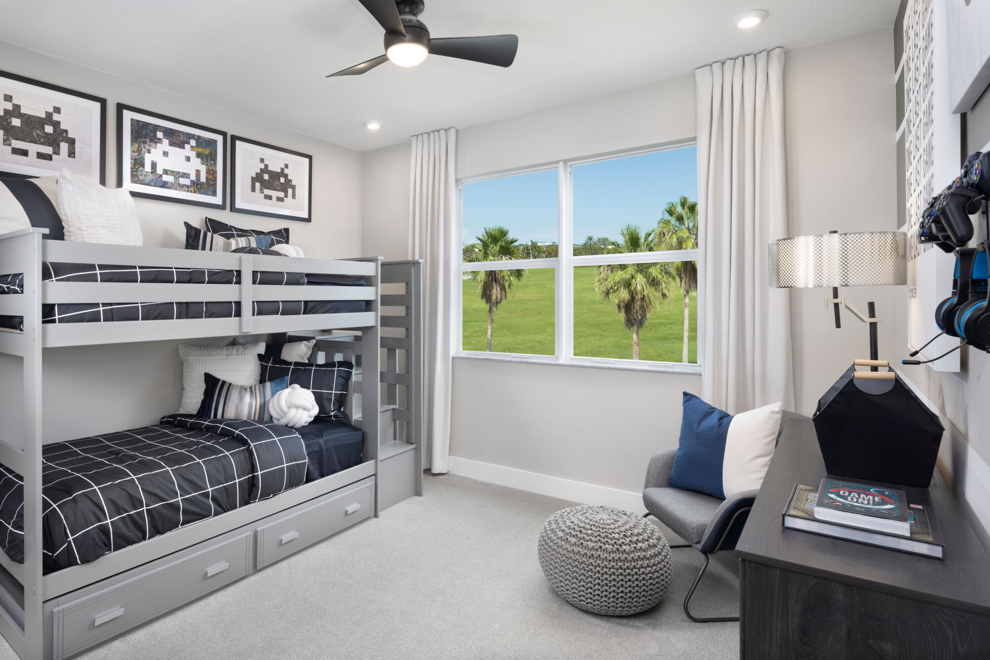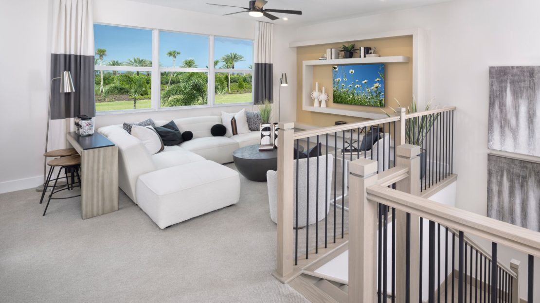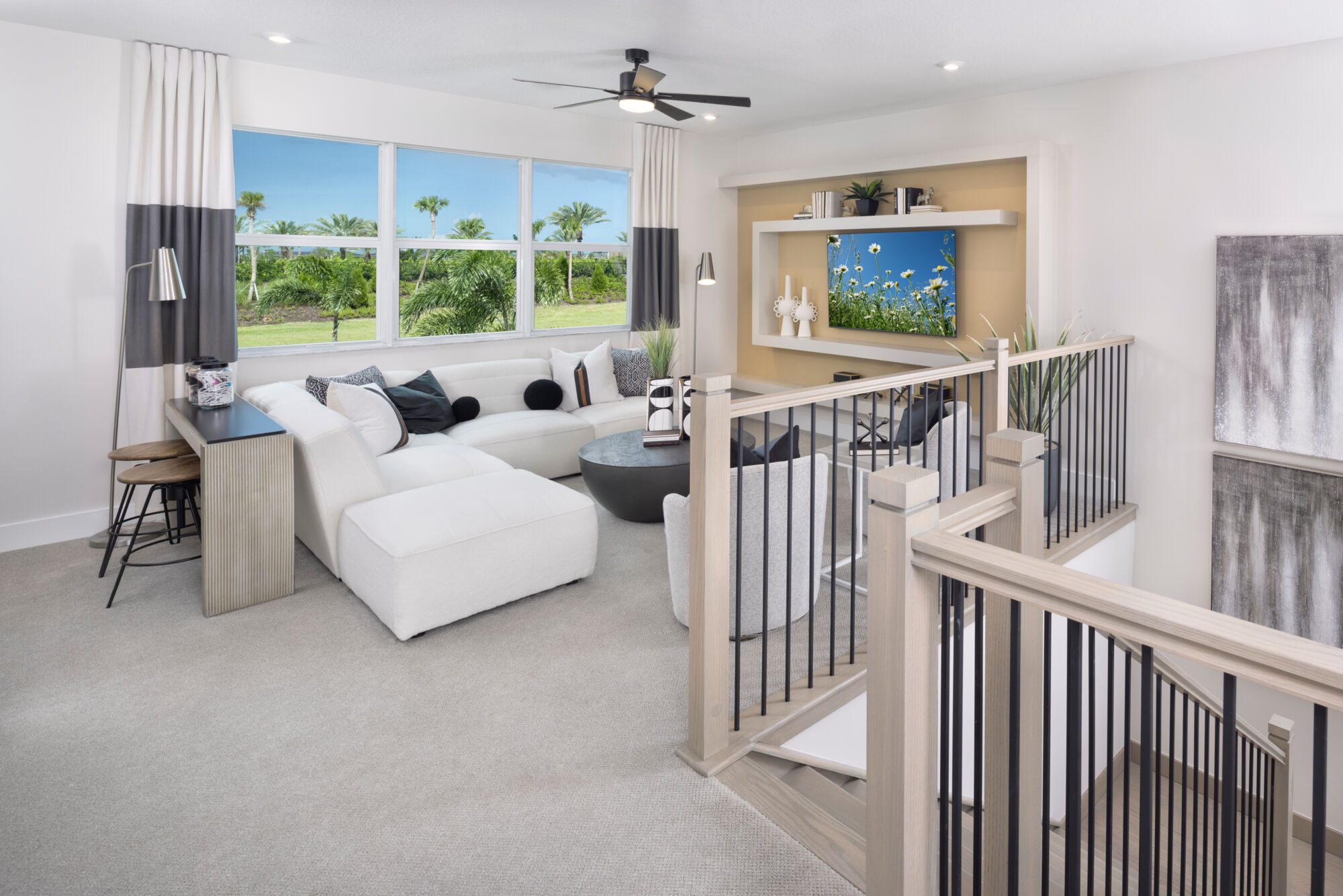 The Wynn is a 2,900 sq. ft. 2-story home that offers 4 bedrooms, 3.5 baths and 2-car garage. Upon entering the foyer, you are welcomed to an open floorplan. The spacious kitchen offers an extensive walk-in pantry and an island breakfast bar. The kitchen overlooks the dining area and Great Room. A sliding glass door in the Dining Room leads to the covered lanai. Bedroom 4, located on the first floor, connects to a full bath and walk in closet. The second floor is complete with a loft, owner’s suite and bath, two additional bedrooms and a full bath. The roomy loft offers a flexible living space. The owner’s suite boasts a large walk-in closet and is connected to the owner’s bath with a spacious shower and dual sink raised vanity. All of the secondary bedrooms have walk-in closets and share a full bath with double sinks. The laundry room is located upstairs for added convenience.