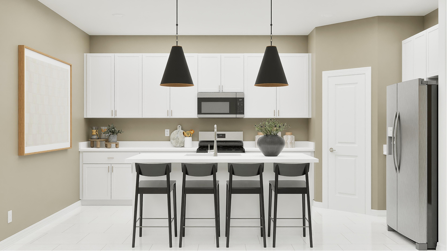 This new single-story home is designed for seamless everyday living. Two secondary bedrooms share a bathroom in the hall at the front of the home, while a third is around the corner with a private bathroom. Down the foyer is the open living area, which includes a kitchen, dining room and family room with a covered patio. The owner’s suite is tucked into the rear corner with an attached bathroom.
