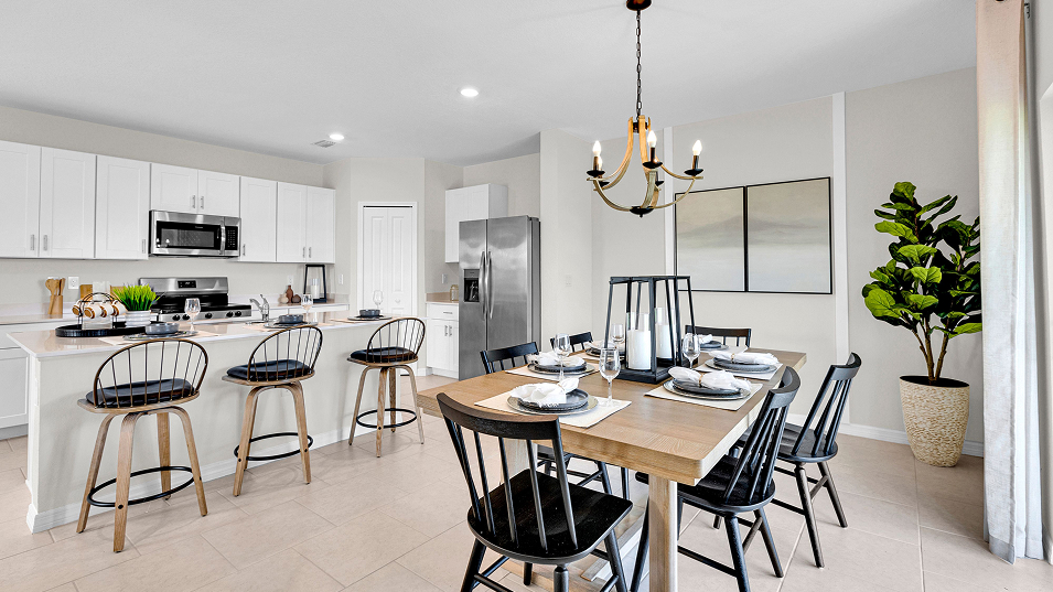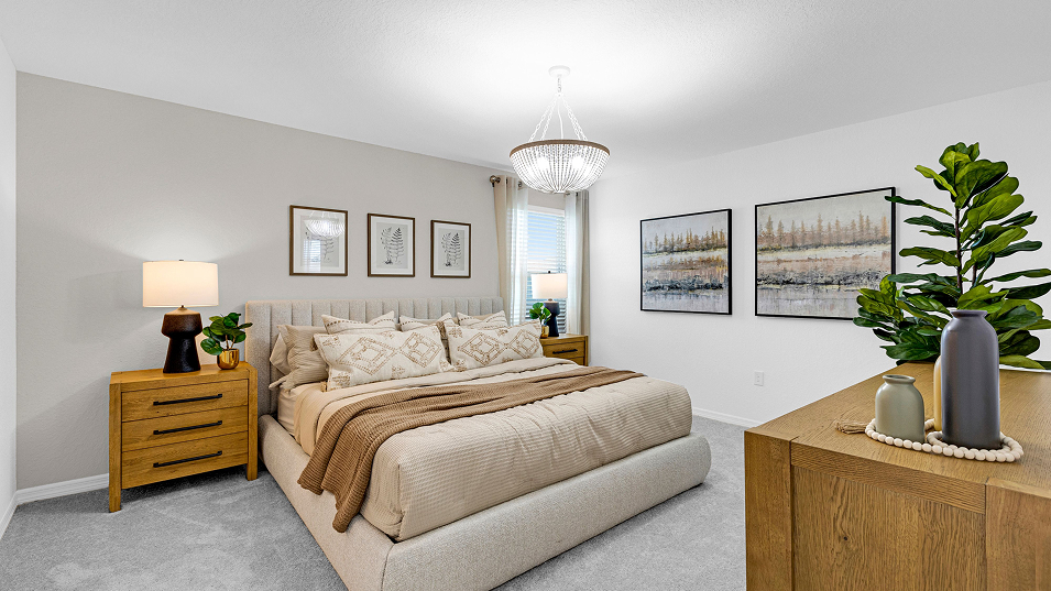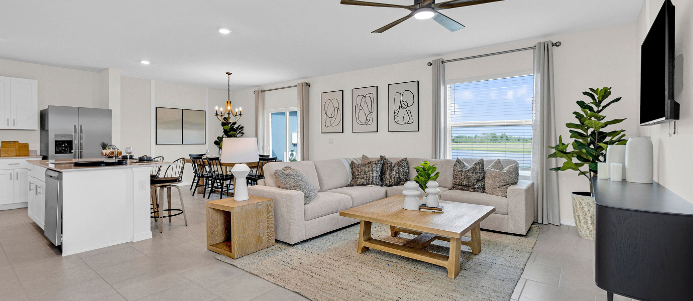 This expansive two-story home boasts a well-designed layout, featuring a first floor dedicated to shared living and entertaining. The open-concept design seamlessly connects the kitchen, dining room and family room, with a covered lanai extending the interior space outdoors. Upstairs, a spacious loft separates the three secondary bedrooms from the serene owner’s suite. Completing the home is a convenient two-car garage.