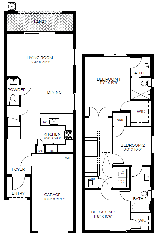 The Bondi floorplan featured at our new community, Lakeside Landing in Royal Palm Beach, Florida. The Bondi floorplan offers a spacious and modern living experience in a two-story townhome. With 1,446 square feet of living space, this design includes 3 bedrooms and 2.5 bathrooms. All bedrooms are located on the second floor, providing a private and serene retreat. The primary bedroom features a large walk-in closet for ample storage and organization.