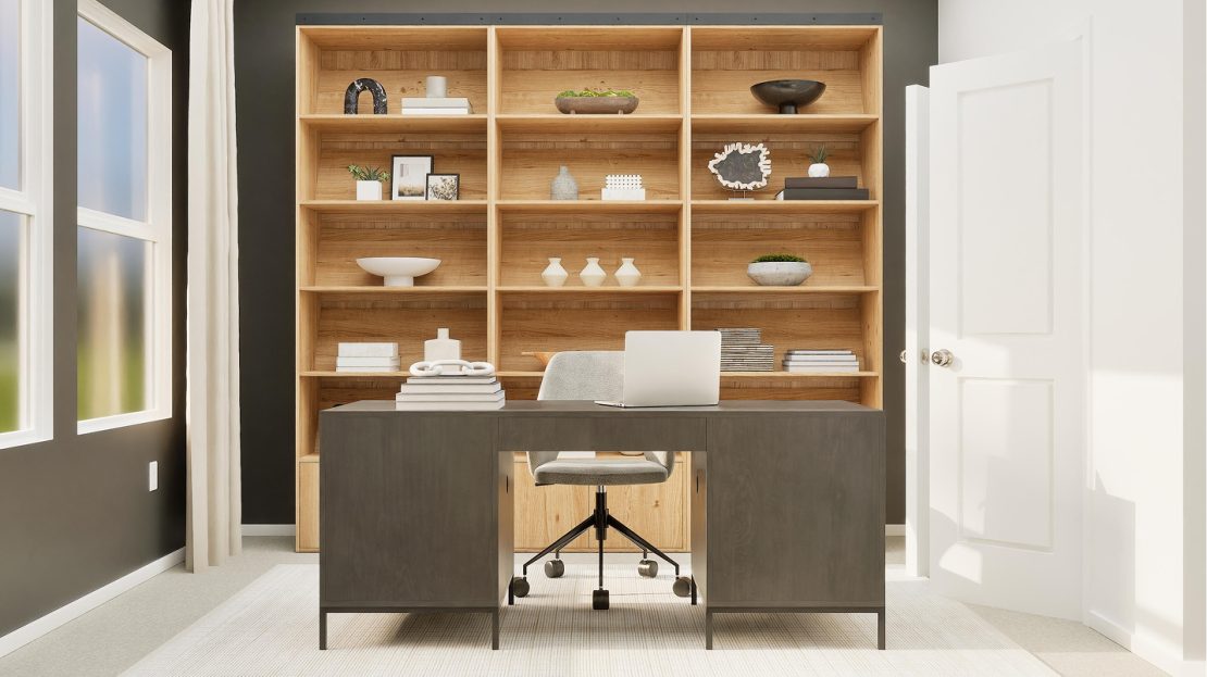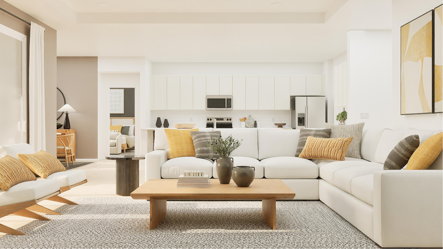 This new two-story home features a first-floor owner’s suite that offers a comfortable retreat with a full bathroom and walk-in closet. Near the front of the home off the foyer are a secondary bedroom and a flex space, ideal as an office or studio. An open-concept floorplan with easy access to a covered patio encourages simple indoor-outdoor living and entertaining. Three additional secondary bedrooms can be found on the second floor near a shared living space in the loft.