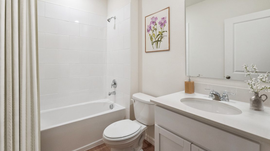 Enjoy the Florida weather year-round with easy access to the covered lanai from the living space. Each bedroom offers comfort and privacy with carpeted floors and ample closet space. The primary suite, at the rear of the home, includes an en-suite bathroom with a walk-in closet, double vanity, and walk-in shower. Additional bedrooms are well-sized, with two sharing a bathroom and one having its own for added convenience. The Madison includes a dedicated laundry room and a 3-car garage, offering ample storage and parking. Advanced smart home technology enhances security and convenience, allowing remote control via your smart device.