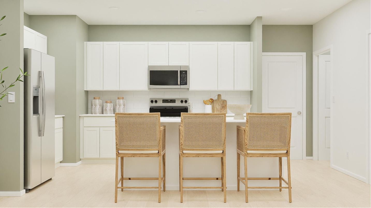 This new two-story townhome with a convenient two-car garage features a smart layout that maximizes space. Upon entry is an open layout shared among the welcoming living room, large dining room and modern kitchen, perfect for multitasking and everyday living. On the top floor are all three bedrooms and a versatile loft for extra entertainment space. The owner’s suite is tucked into a corner with a private bathroom and walk-in closet.