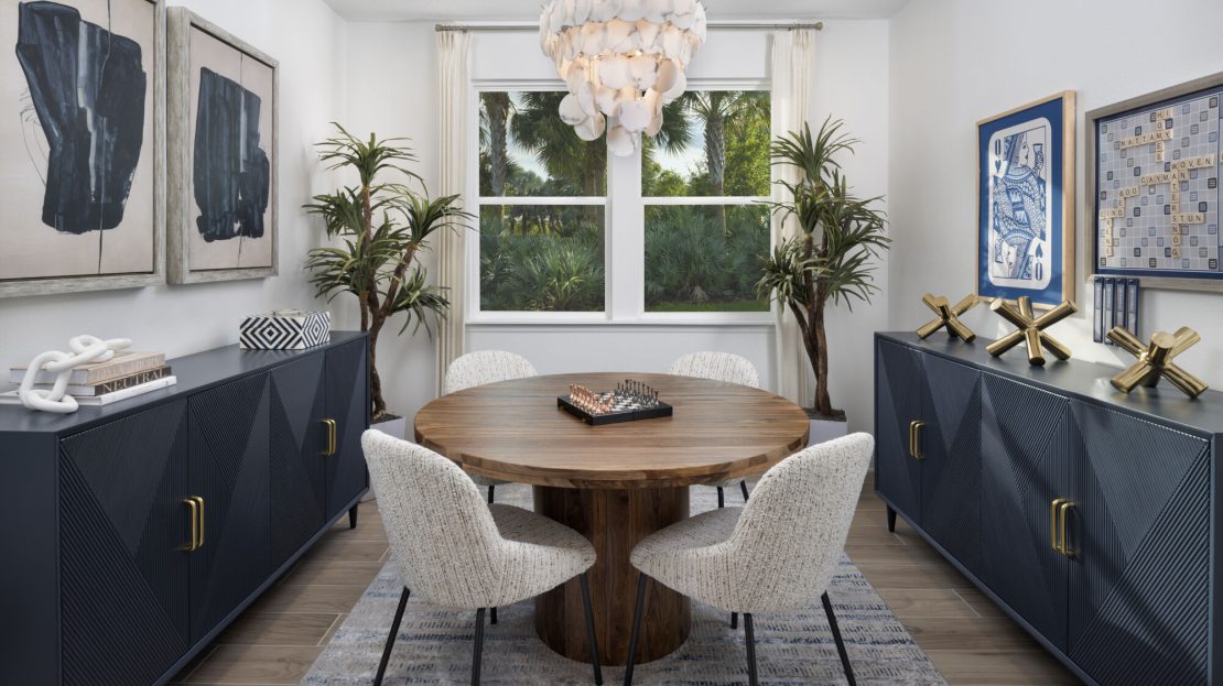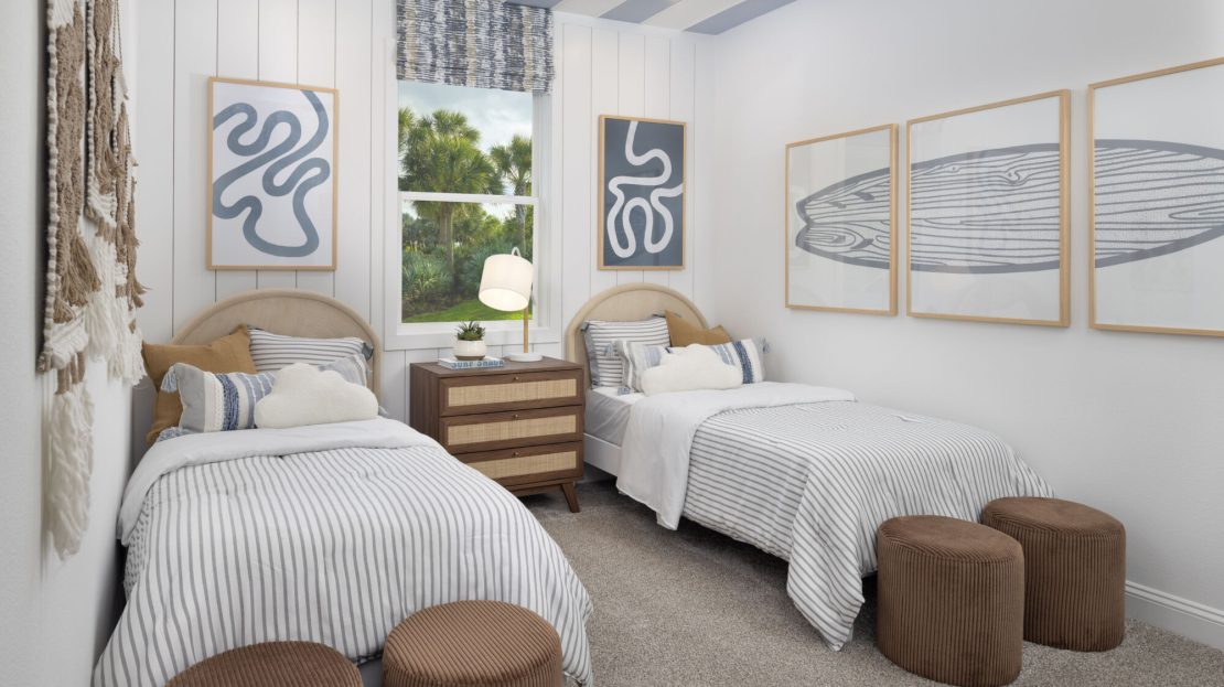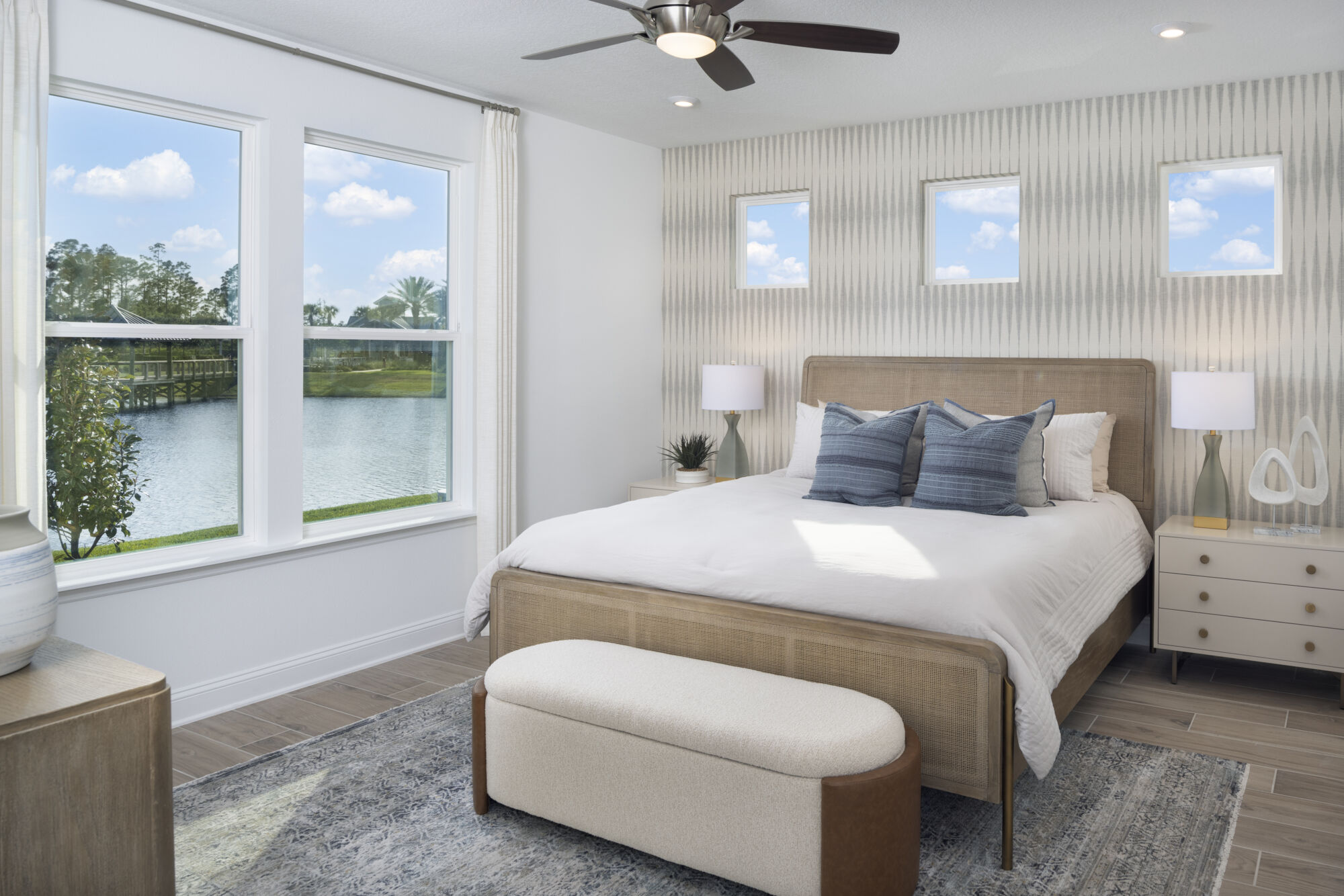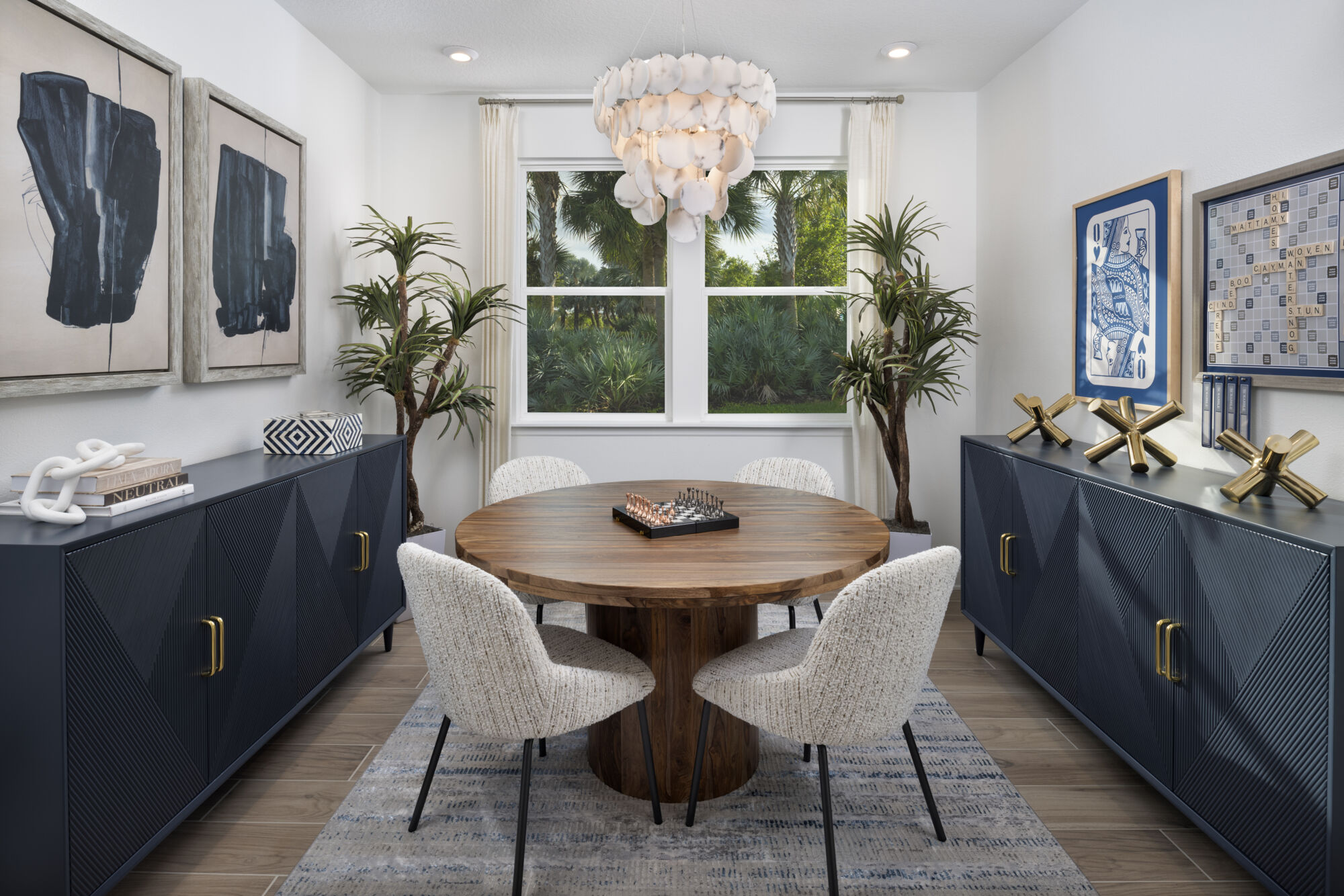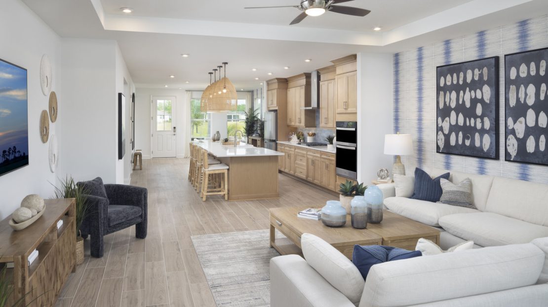 Step into the Cayman and immediately feel the open, airy charm that defines this home. The foyer gracefully leads into the dining room, while the kitchen island connects seamlessly with both the dining area and Great Room, offering an unobstructed view of the bright, open-concept space. The expansive living area flows out onto the lanai, extending your living space outdoors. The kitchen also overlooks the flex room, which offers multiple possibilities—use it as a private study, a wellness studio, or even convert it into a third bedroom to suit your needs. A hallway connects the flex room to a bedroom located near the front door. The owner’s suite, located in the rear corner of the home, offers exceptional privacy, comfort, and convenience—qualities highly sought after by today’s homeowners. Just steps from the Great Room and lanai, the suite provides easy access to both the peaceful outdoors and the heart of the home, making it the perfect place to relax or entertain family and friends.