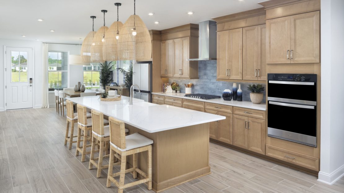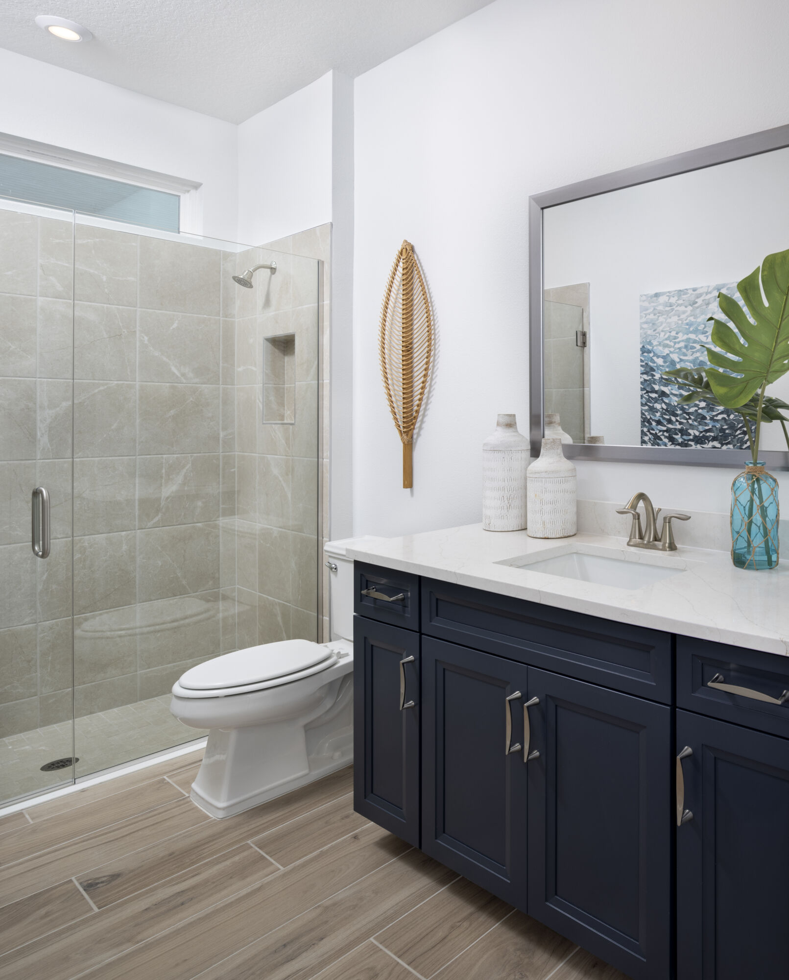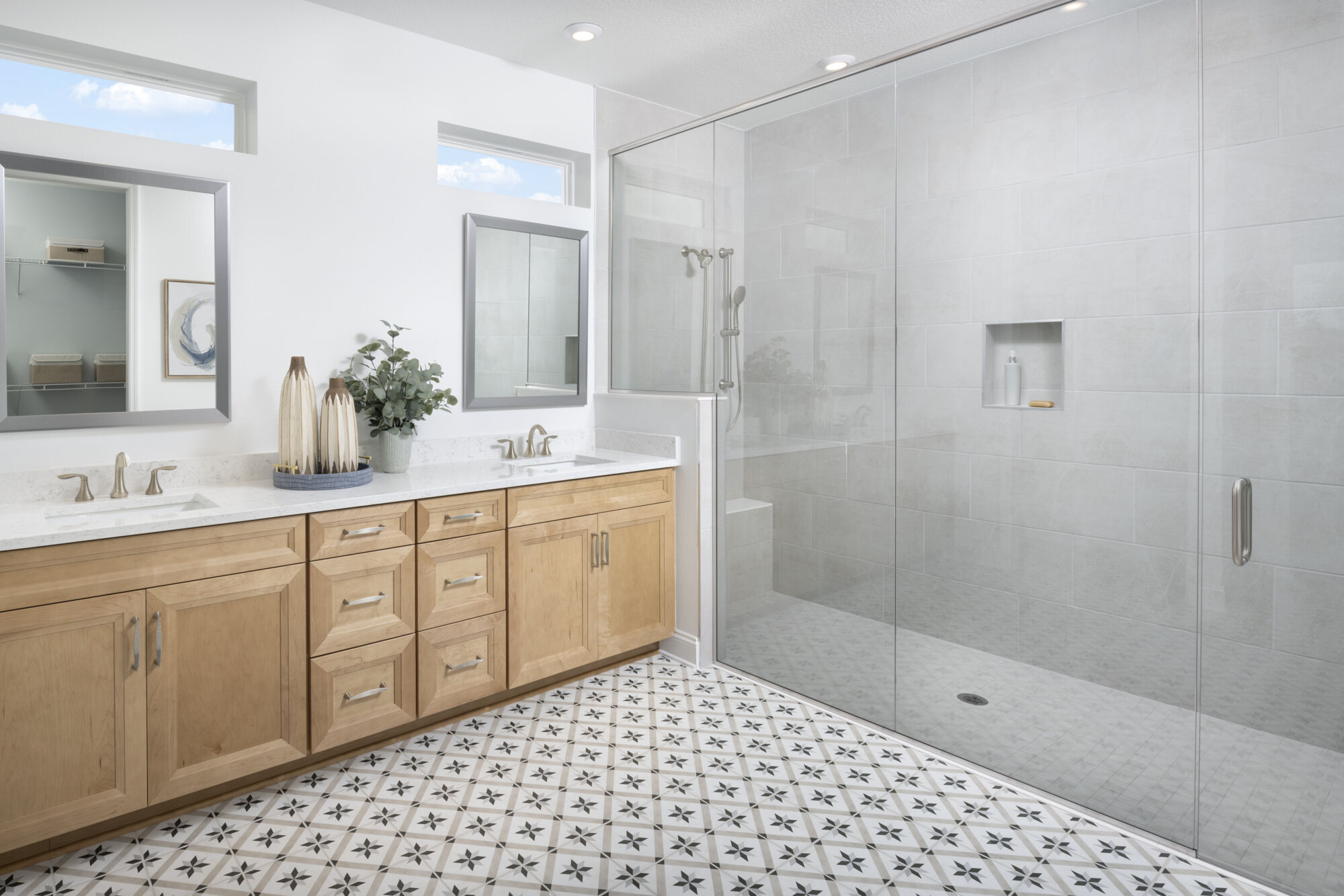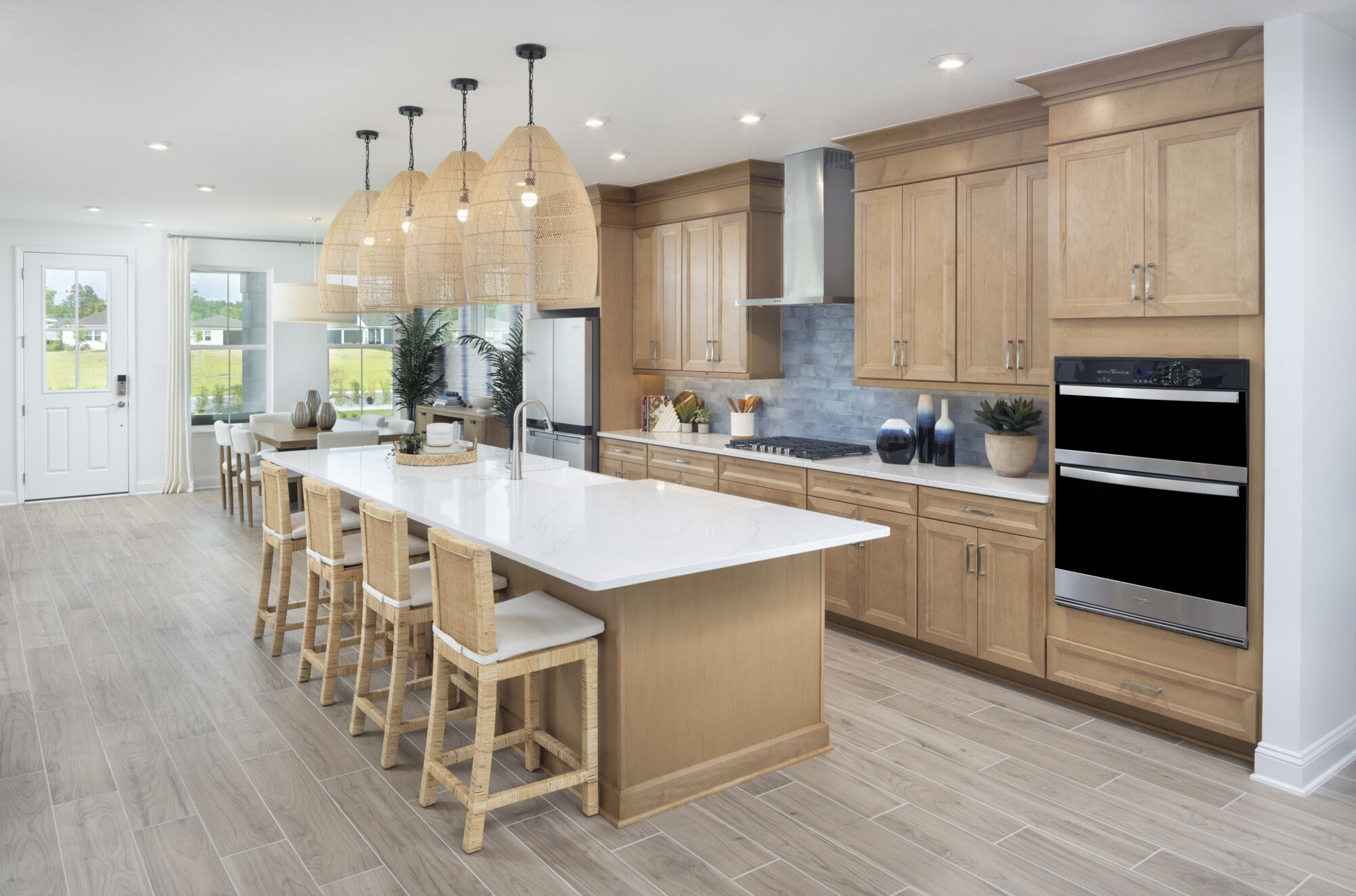 Step into the Cayman and immediately feel the open, airy charm that defines this home. The foyer gracefully leads into the dining room, while the kitchen island connects seamlessly with both the dining area and Great Room, offering an unobstructed view of the bright, open-concept space. The expansive living area flows out onto the lanai, extending your living space outdoors. The kitchen also overlooks the flex room, which offers multiple possibilities—use it as a private study, a wellness studio, or even convert it into a third bedroom to suit your needs. A hallway connects the flex room to a bedroom located near the front door. The owner’s suite, located in the rear corner of the home, offers exceptional privacy, comfort, and convenience—qualities highly sought after by today’s homeowners. Just steps from the Great Room and lanai, the suite provides easy access to both the peaceful outdoors and the heart of the home, making it the perfect place to relax or entertain family and friends.