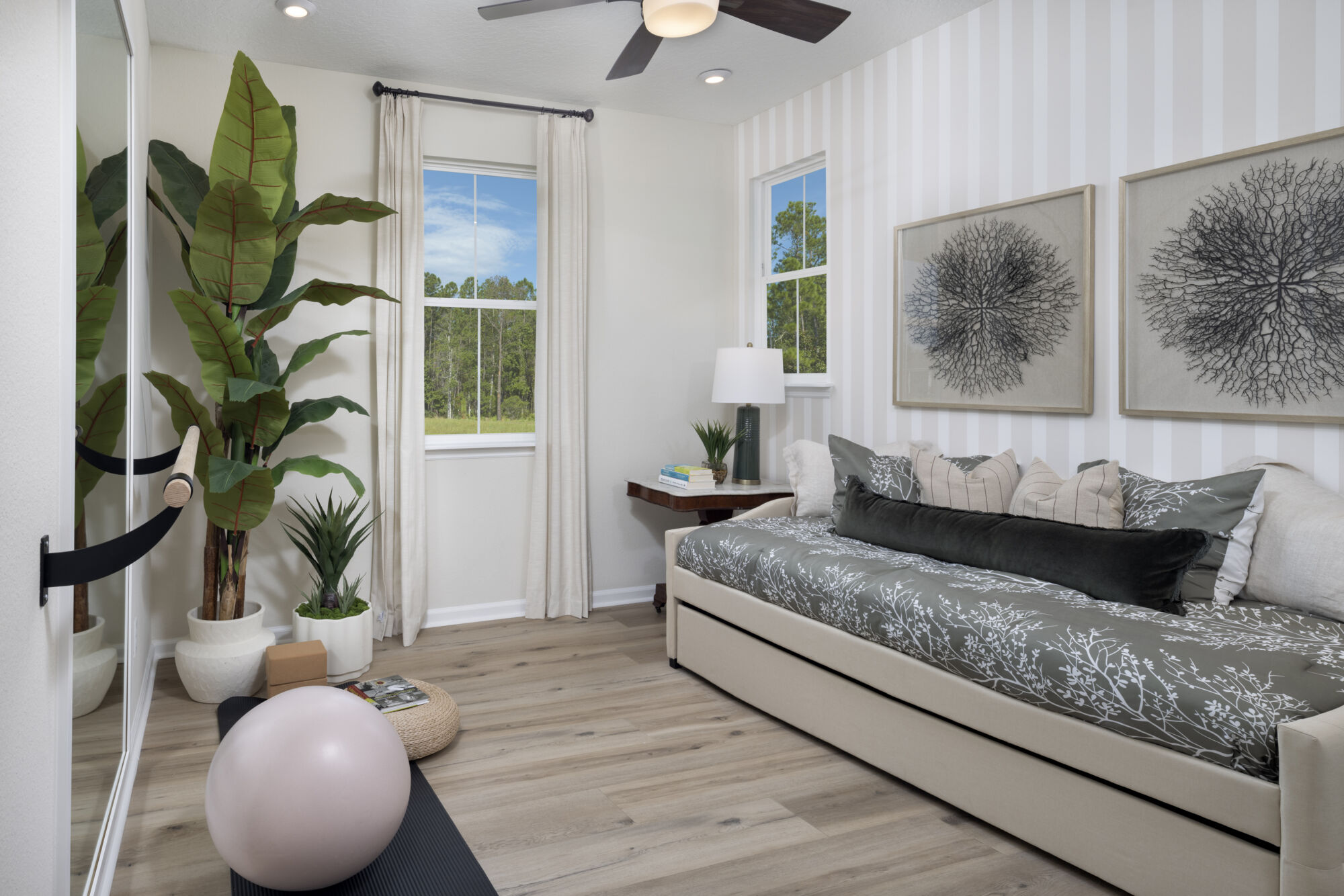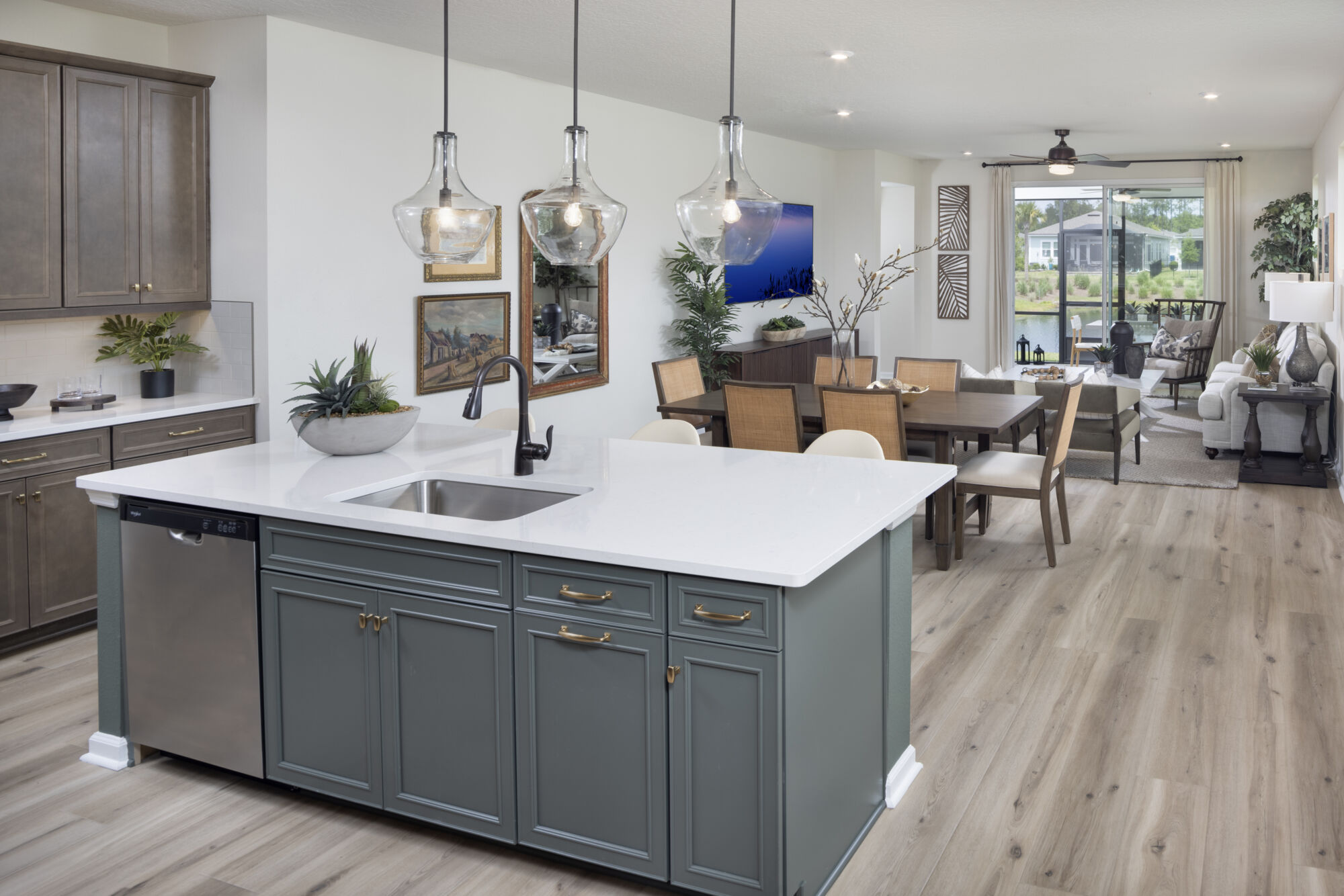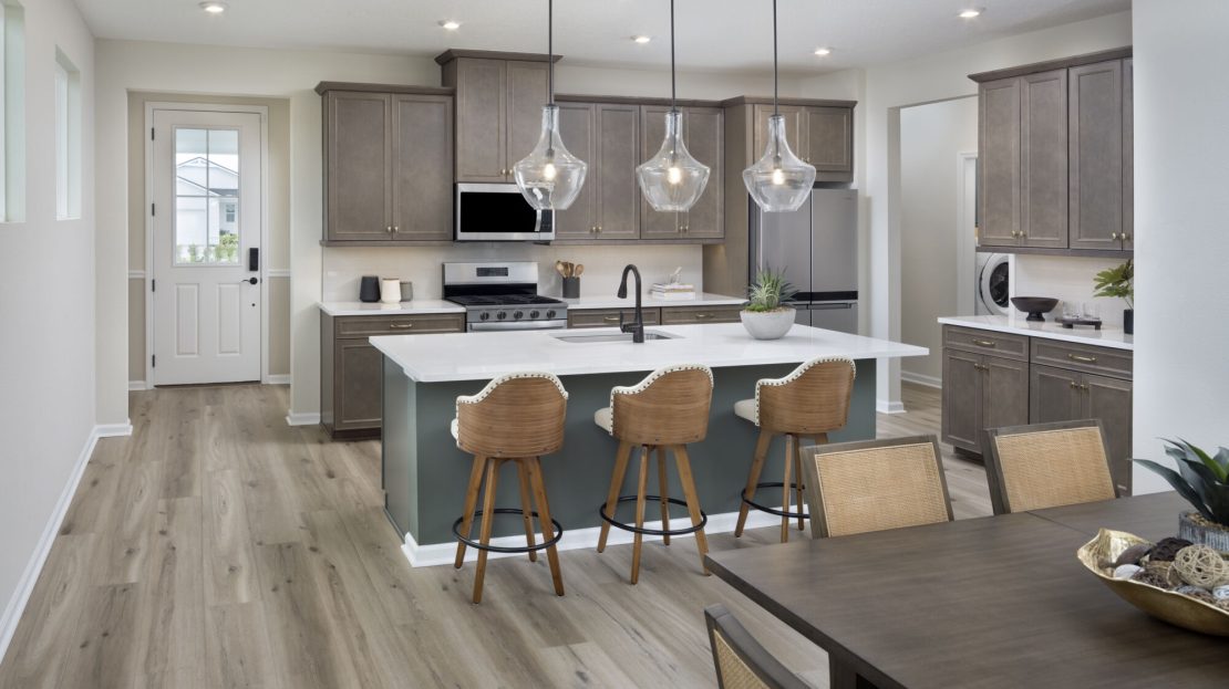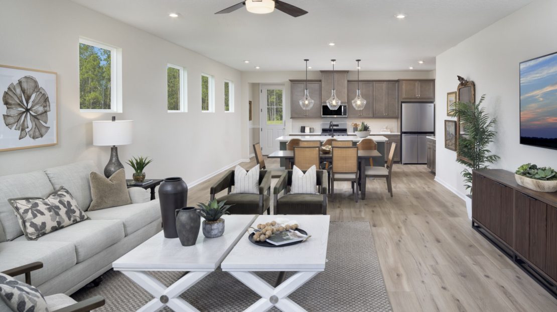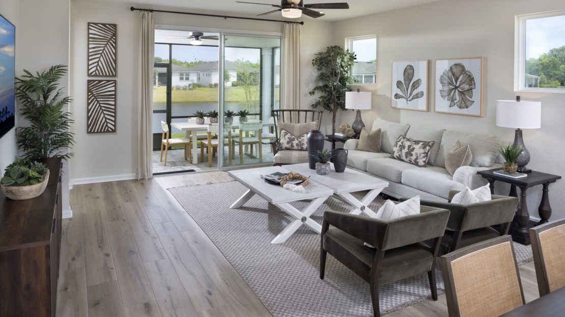 You experience nearly the entire home the moment you walk into the Hammock. The foyer opens directly to the kitchen, where the island overlooks the Great Room and dining room. The grand open-concept space flows effortlessly to the covered lanai, with windows along the length of the Great Room bathing the living area in natural light. This generous centerpiece is perfect for quiet relaxation or entertaining guests.
