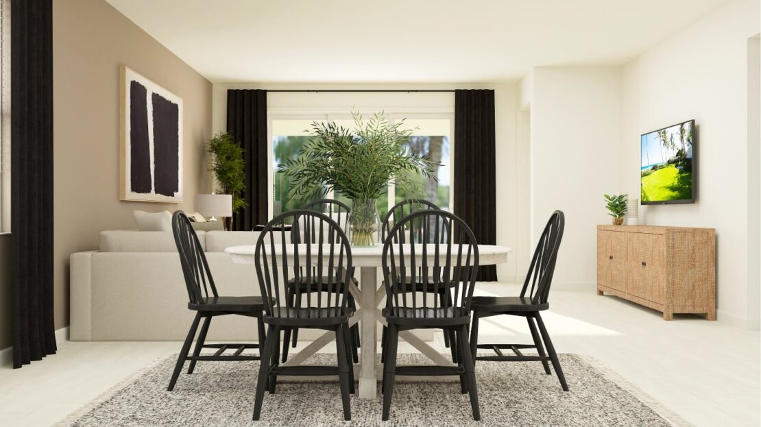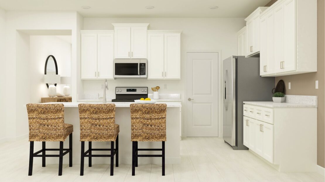 This spacious single-story home features both a storage space and multipurpose flex space for comfortable living. The stylish kitchen, family room and dining room cohesively flow into a serene patio for indoor-outdoor entertaining. The expansive owner’s suite with a spa-like private bathroom provides a serene retreat, while two additional bedrooms are ideal for overnight guests.