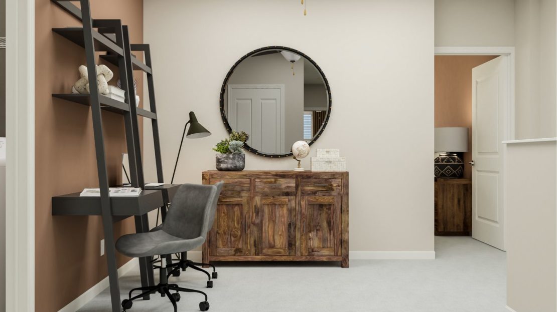 This two-story townhome showcases a contemporary open design among the first-floor kitchen, living room and dining room to promote seamless transitions between spaces. Nearby is a covered patio for outdoor relaxation. Upstairs caters to intimate spaces with a versatile loft area, two secondary bedrooms with shared access to a Jack-and-Jill style bathroom, along with the private owner’s suite complemented by an oversized walk-in closet.